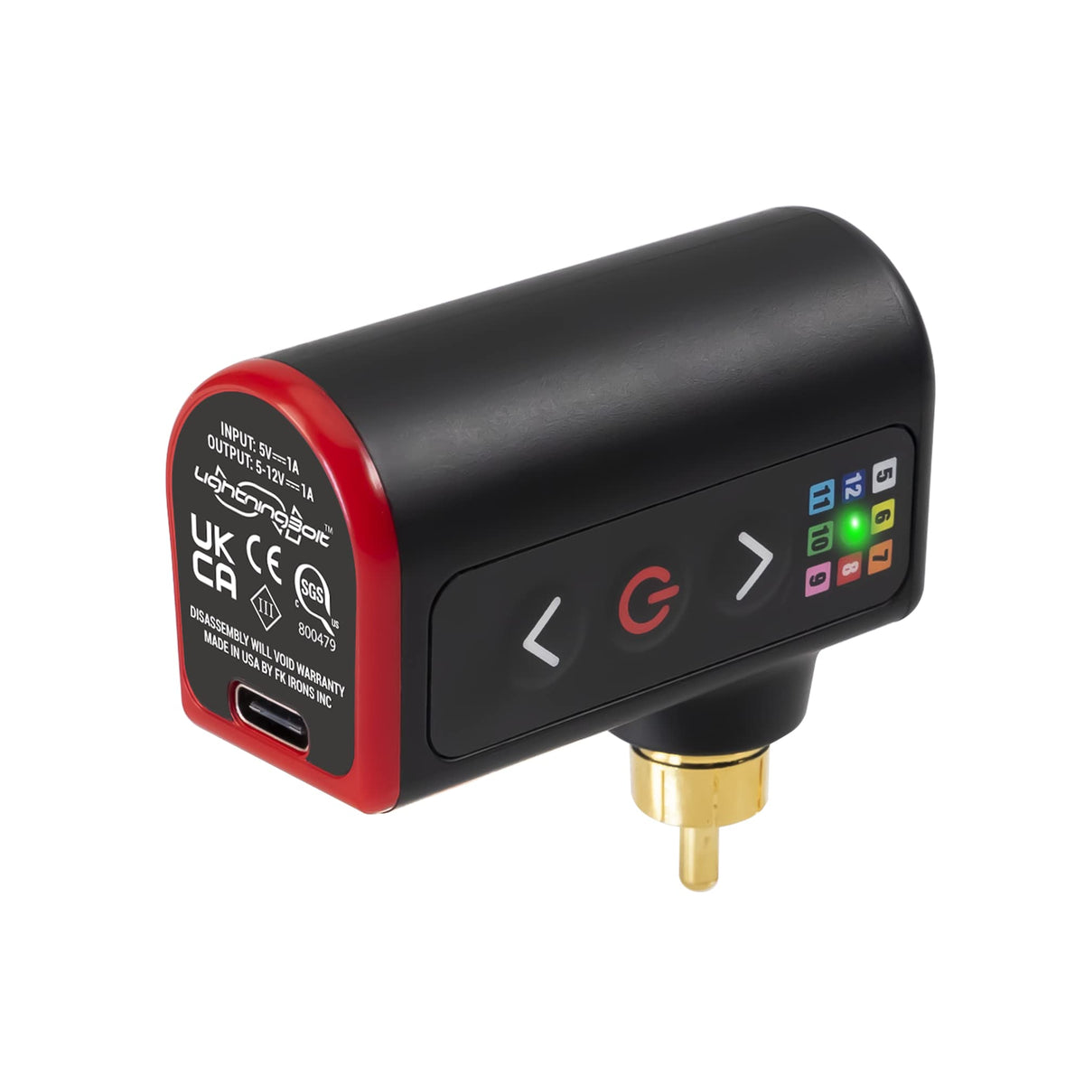 Fk Irons Strives To Develop Products To Revolutionize And Innovate The Tattoo Industry. Thats Why We Engineered A Powerful Battery Thats Not Only Well-Balanced But Can Be Universally Connected To Any Rca Machine On The Current Market. Its The One Battery To Power Them All. This Revolutionary Power Supply Can Be Connected To Any Rca Machine - As Long As The Rca Jack Isnt Blocked. Its Compact Design Is Great For Easy Travel, And It Keeps In Mind The Machines Ergonomic Balance Point. Weighing At Only 2 Oz, The Lightningbolt Uni May Be Small, But Can Still Power Your Machines For Up To 10 Hours - Depending On Voltage. Thats Power. The Lightningbolt Uni Was Designed To Be The Only Power Supply Artists Need And Provide Power For All.