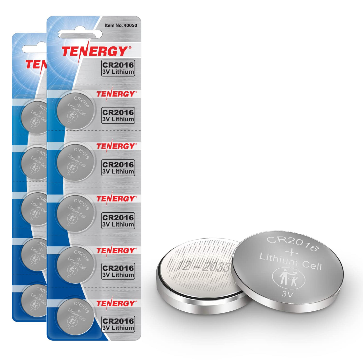 Tenergy Cr2016 Battery, Cr2016 3V Lithium Battery Watches, Key Fobs, Calculators, Medical Devices, And More, 10 Count (Pack 2)