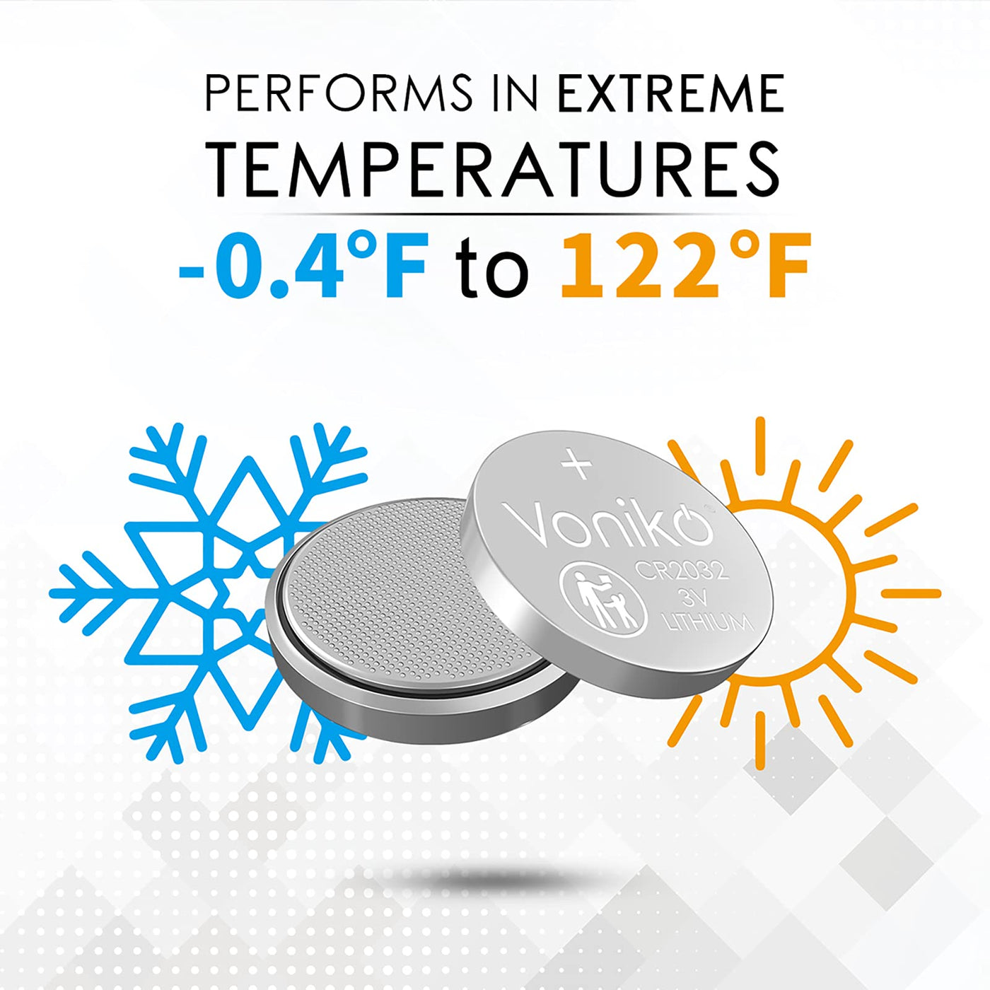 Voniko 3 Volt Cr2032 Battery 6 Pack - Lithium Batteries - 2032 Button Battery Flat - 7 Years Shelf Life