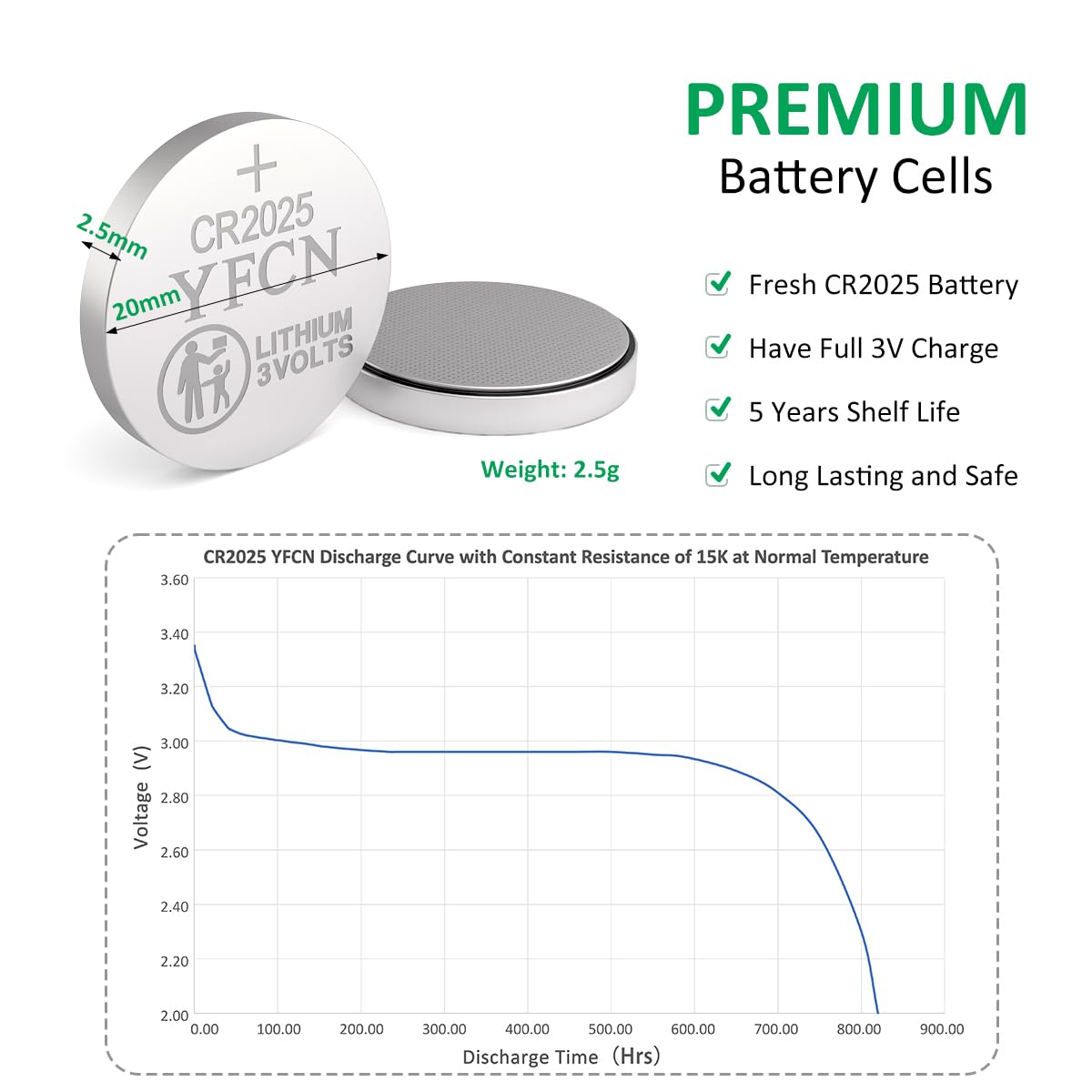 Yfcn Cr2025 Battery 3V Lithium Battery 10 Count Pack Cr2025 Batteries For Key Fobs, Remote Control, Led Candles, Thermometers - Cr 2025 Coin Cell Batteries - 5 Years Shelf Life