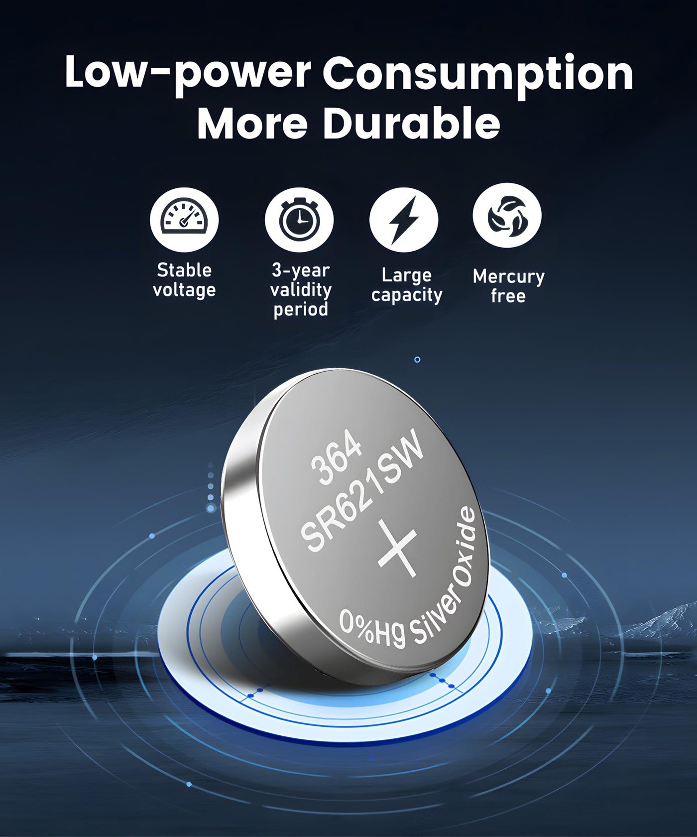 Ykm 364 363 Watch Battery Use A+ Class Battery Cells,Ensure Long Lasting Power And Reliable Performance For Your Device; 364 Battery Shell Is Made Of Corrosion-Resistant Steel Shell With Good Sealing.364 Watch Battery Dont Contain Hg/Cd/Pb,Watch Battery 364 Is Environmentally Friendly And Will Not Cause Pollution To The Environment.