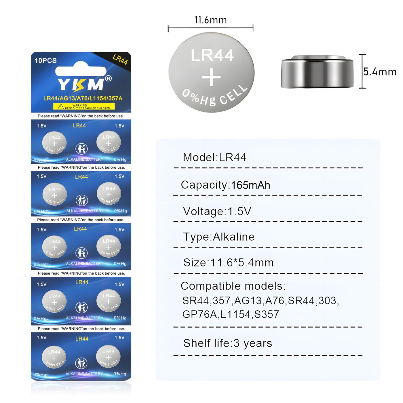 Ykm Lr44 Batteries Ag13 L1154F A76 357/303 L1154 Sr44 L1154C Lr44H 1.5V Batteries For Digital Caliper Meat Thermometer Watch Bat