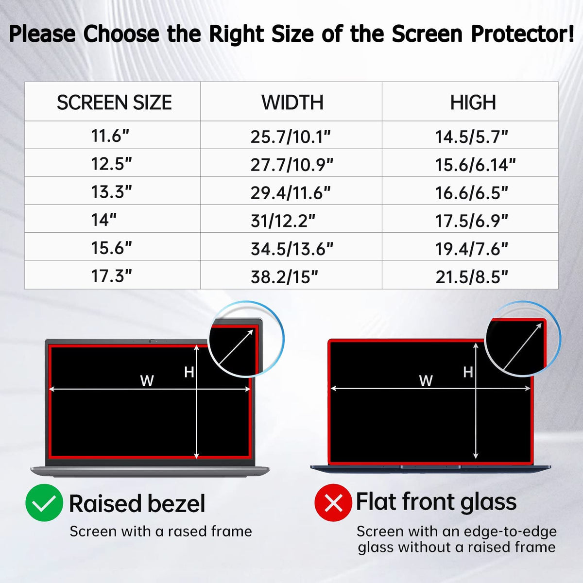 Q: Is this screen protector compatible with my 11.6-inch laptop?A: Yes, this blue light blocking screen protector is specifically designed for all 11.6-inch laptops that have a 16:9 aspect ratio. Please ensure to check your laptop's dimensions before purchasing.