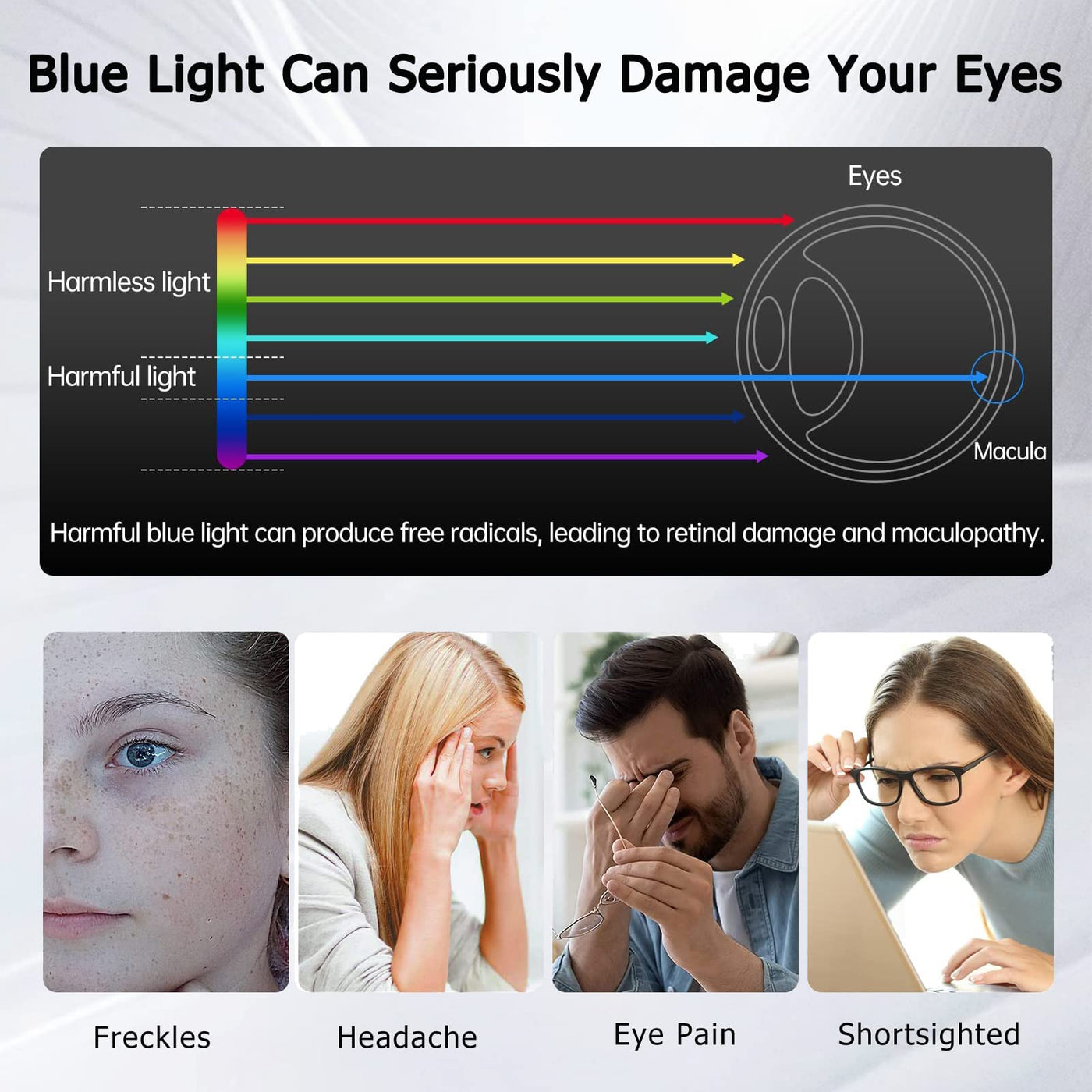 Q: How does the blue light blocking feature benefit my eyes?A: The 8-layer blue light blocking technology helps to filter harmful blue light emitted from screens, reducing eye fatigue and discomfort. This can be particularly beneficial for those who spend long hours on their laptops.