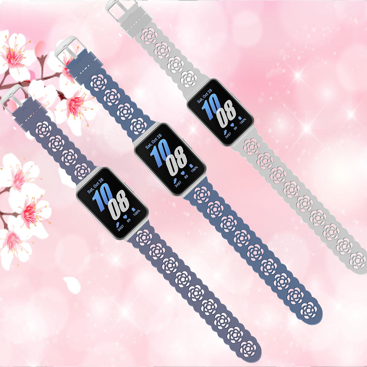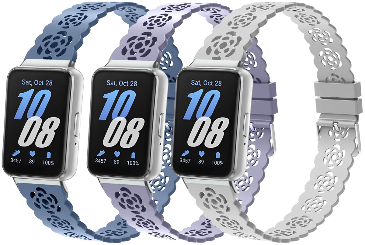 3 Pack Sport Bands Compatible With Samsung Galaxy Fit 3, Slim Lace Breathable Rose Hollowed-Out Soft Silicone Replacement Straps