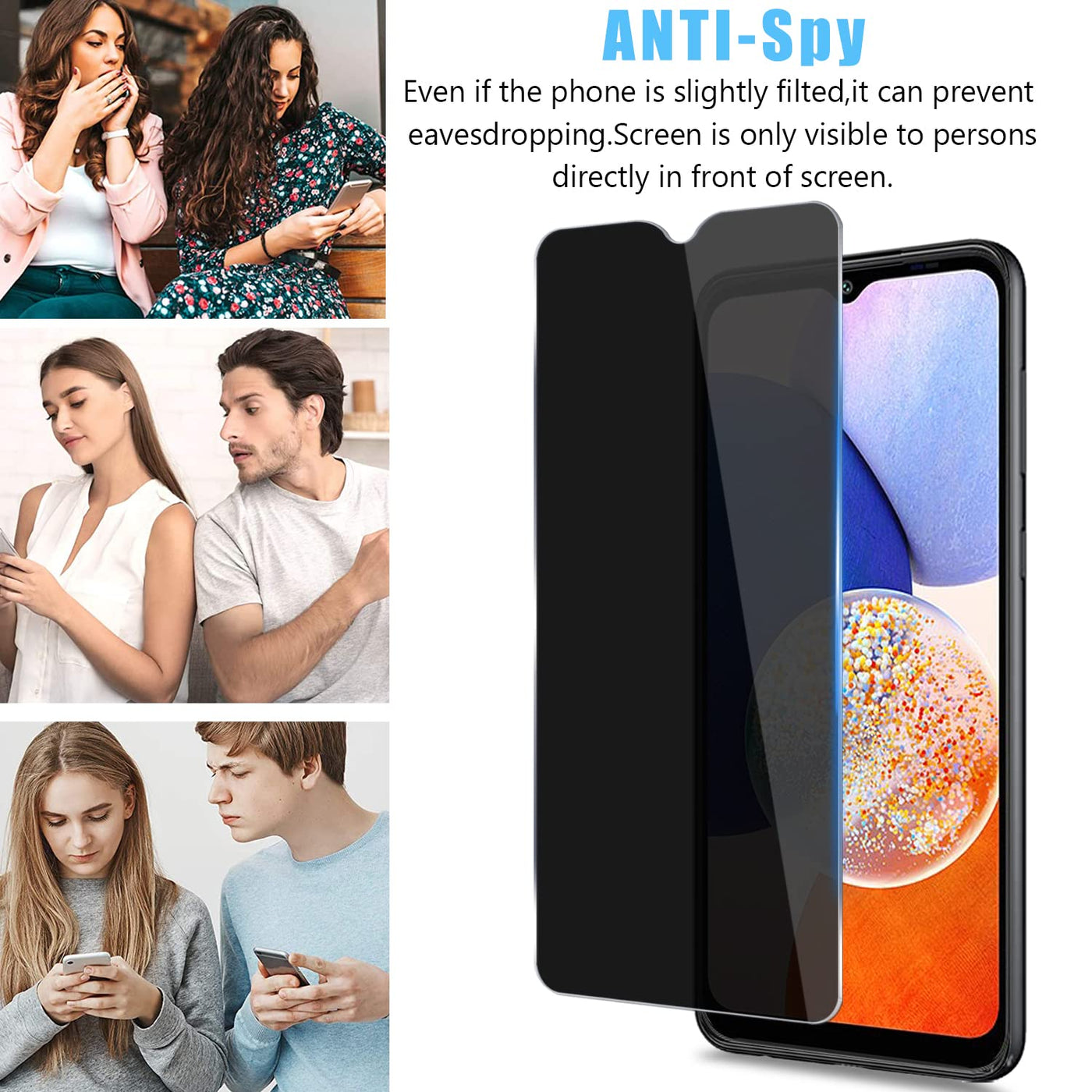 [Privacy] Privacy Screen Protector Can Achieve 45 Degree Ultra-Small Angle Super Powerful Privacy Function. When You Are Taking The Bus, Elevator, Metro Or Other Public Occasions, Even The Person Next To You Can'T Clearly See What'S Displayed On Your Phone, Making Your Private Information Is Safely Hidden. Protect Privacy & Say No To Peeper.Compatibility - Designed For The Samsung Galaxy A14 5G. | [Compatible Device]- Only Designed For Samsung Galaxy A14 5G , Packing With 2 Packs Tempered Glass Camera Lens Protectors And 2 Packs Privacy Screen Protectors. | [High Definition] Made With High Quality Clarity Premium Tempered Glass, This Privacy Glass Is Much Clearer Than Other Privacy Screen Protector. | [Fingerprint-Less] Coated With Hydrophobic And Oleophobic Clear Layer, The Glass Protects Against Sweat And Oil Residue From Fingerprints And Keep Your Phone Screen Pristine All Day Long. | [Easy Installation] Bubble-Free Adhesive Makes It Easy To Install. You Can Remove And Reapply The Screen Protector If There Is Any Problem During Installing.
