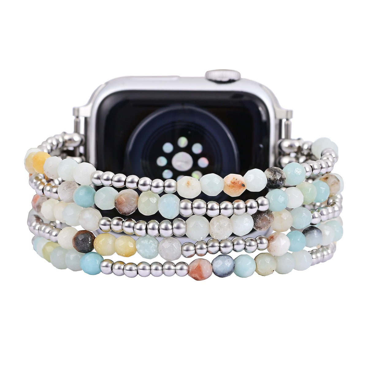 Cape Diablo Smart Watch Band For Women - Handmade Gemstone Strap - Compatible With 38Mm-45Mm Apple Faces (Amazonite Brilliance,