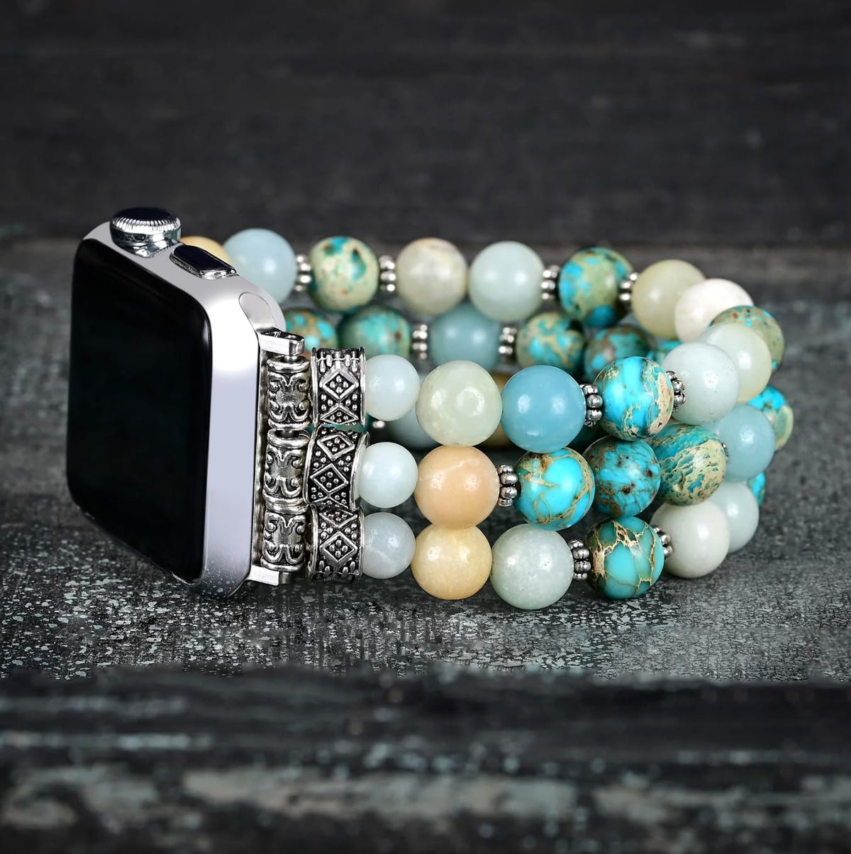 Cape Diablo Smart Watch Band For Women - Handmade Gemstone Strap - Compatible With 38Mm-45Mm Apple Faces (Moonlight Agate, Small