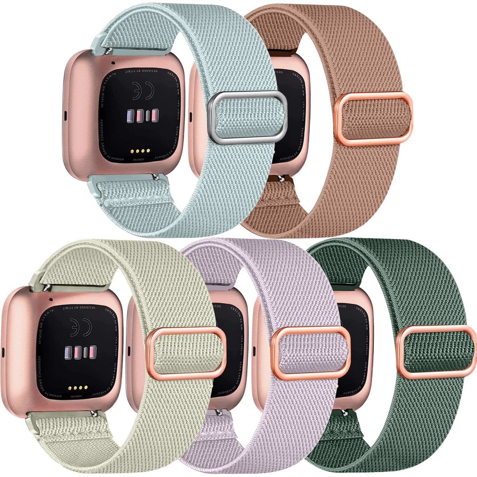 Chinber 5 Pack Bands Compatible With Fitbit Versa 2/3 Bands, Soft Adjustable Nylon Sport Band For Fitbit Versa Smart Watch Women