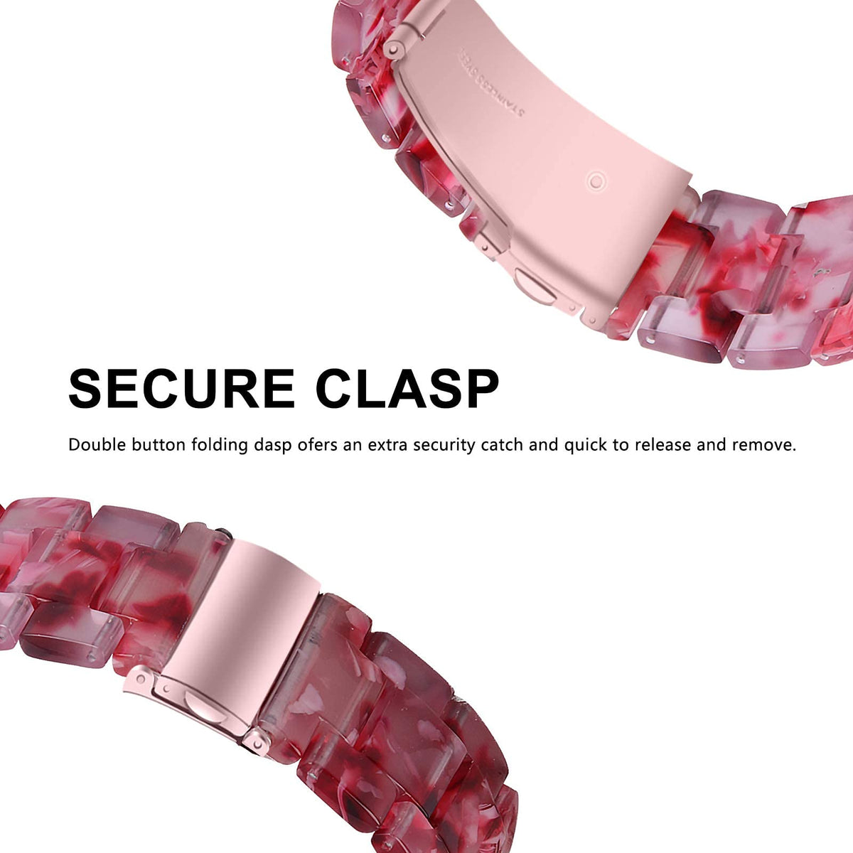 Product Specification: 1. Band Material: Made Of Premium Resin 2. Clasp Style: Classical Button Clasp 3. Fits Wrist Size: 5.5Inch - 7.87Inch 4. Compatible With: Amazfit Gts 3/Gtr 42Mm/Gts/Gts 2/Gts 2E/Gts 2 Mini 5. Style: Waterproof,Beautiful,Luxury