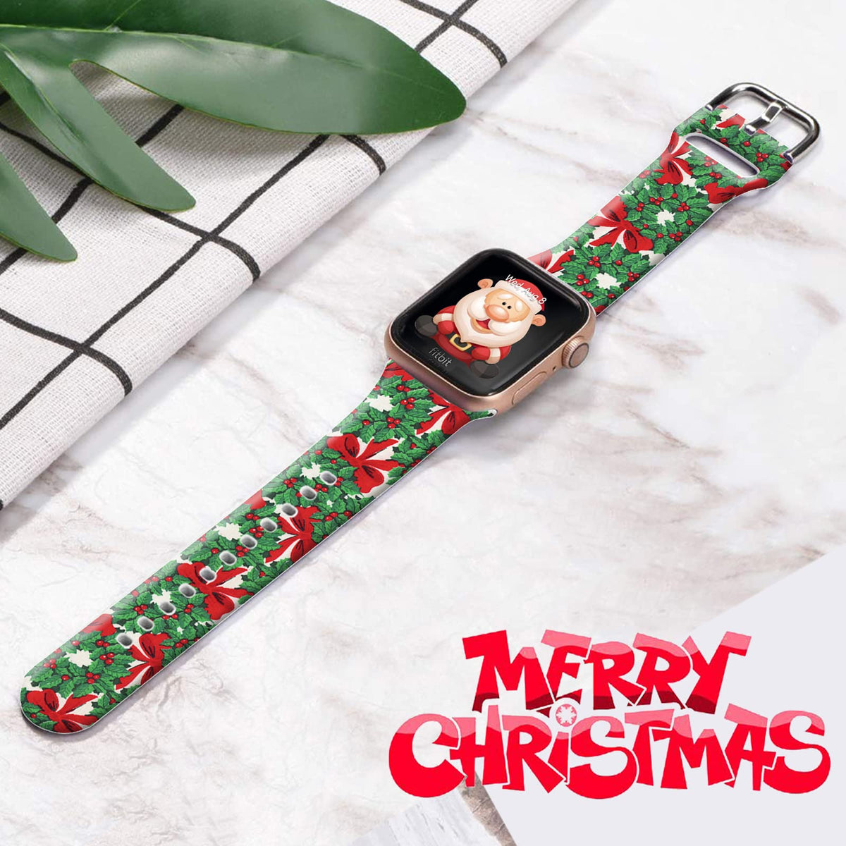 Ftfcase Christmas Silicone Sport Bands Compatible With Fitbit Versa/Versa 2, Decorative Wreath Printed Soft Silicone Strap Repla