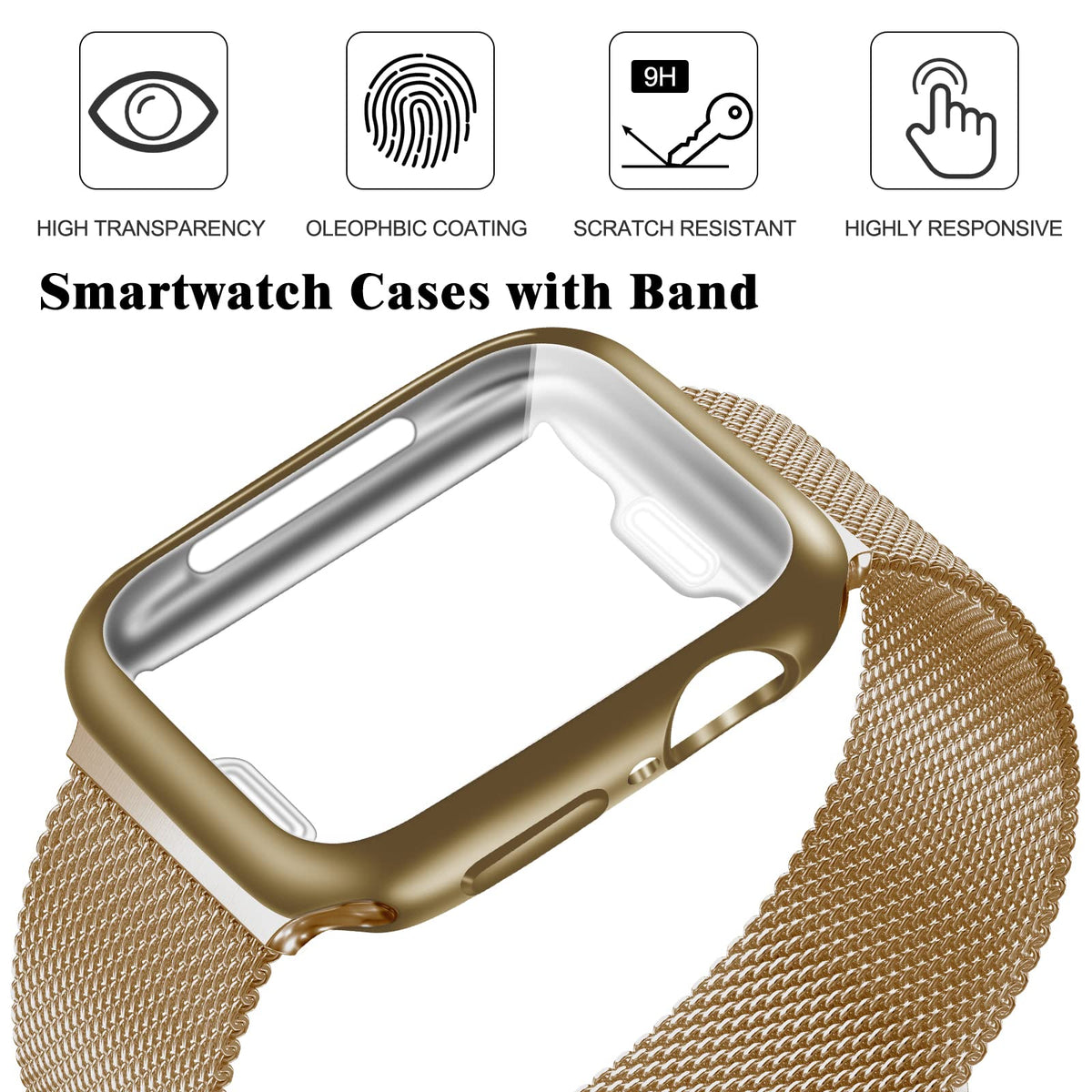 - Geoumy Metal Replacement Band Compatible With Apple Watch Series 8/7/6/5/4/3/2/1, Se. - Adjustable Magnet Clasp And Security Buckle Design Of The Wristband,Just Easily Stick And Lock Your Iwatch, The Smooth Stainless Steel Mesh Wraps Fluidly Around Your Wrist,Ensuring A Perfect Fit. - Waterproof And Durable Stainless Steel, Comfortable And Cool.Also It Is Solid, Durable, Flexible, Breathable, Non-Allergic, Corrosion And Will Never Get Rusty. -Stylish Design And Color Personalize Your Compatible With Iwatch,Match Your Clothes And Outfit, Change You Mood Everyday. Fits For Woman, Man, Boys And Girls, Amazing Gift For Family And Friends. -The Drop And Scratch-Resistant Apple Watch Band With Case Are Designed To Add An Extra Layer Of Security To Your Expensive Watch. The Premium Tpu Case Provides 360 Degrees Of Total Security For Your Iwatch. It Is Not Afraid Of Bumps, Scratches, Daily Wear, Accidental Drops And Bumps Even In Harsh Environments.