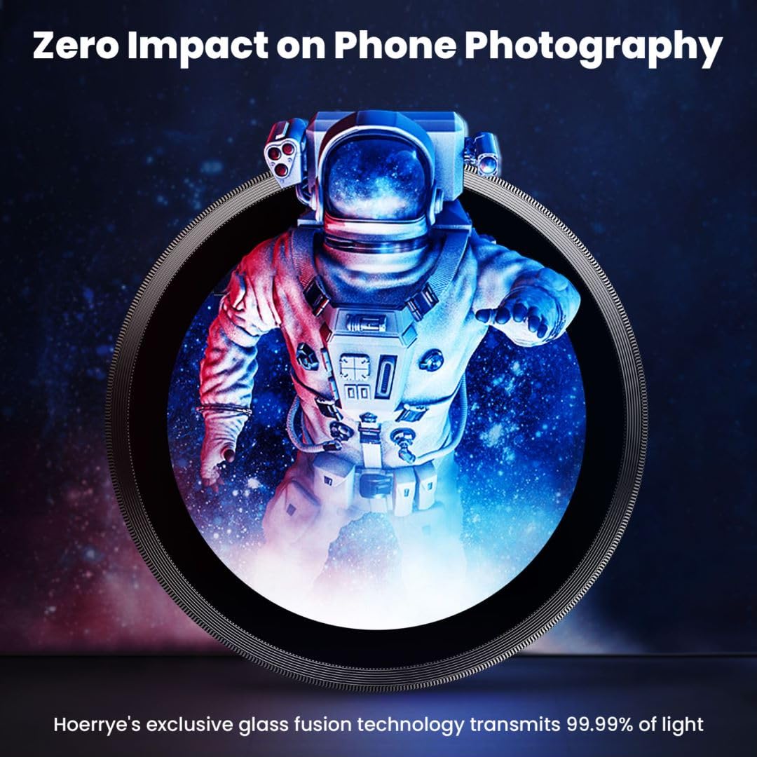 Q: What materials are used in the Hoerrye camera lens protector?A: The camera lens protector is made from space-grade titanium alloy and 9H tempered glass, providing durability, strength, and 99.99% transparency.