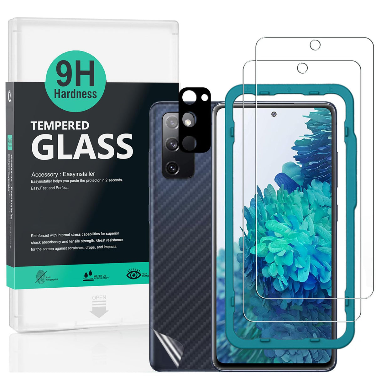 Ibywind Screen Protector For Samsung Galaxy S20 Fe 4G/5G[2 Pack],9H Hardness Tempered Glass,With 1Pc Camera Lens Protector,1Pc Back Carbon Fiber Film