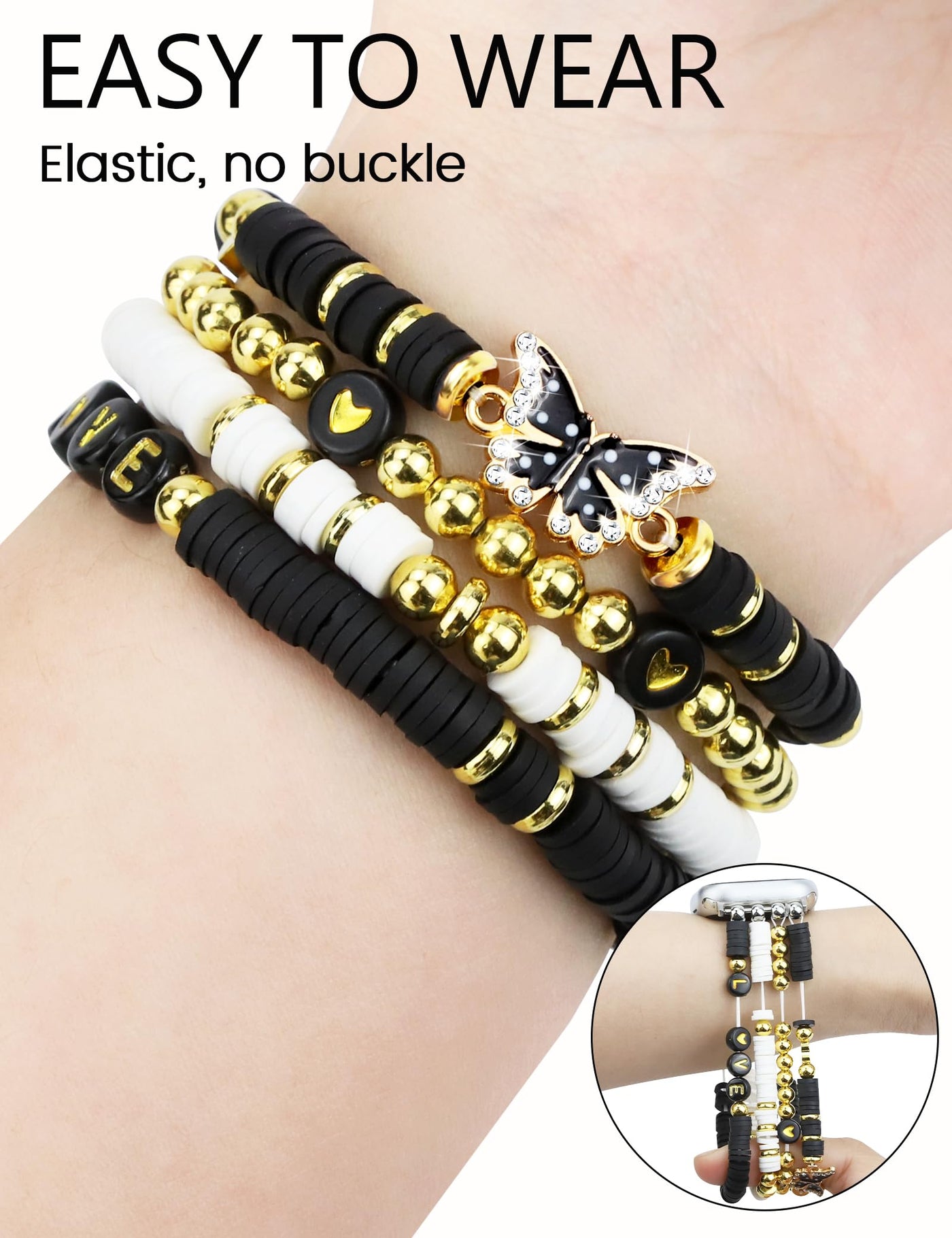 Q: How do I care for the polymer clay beads on the bracelet?A: To maintain the quality of the polymer clay beads, avoid exposure to harsh chemicals and excessive moisture. Clean the bracelet gently with a soft, damp cloth if needed.