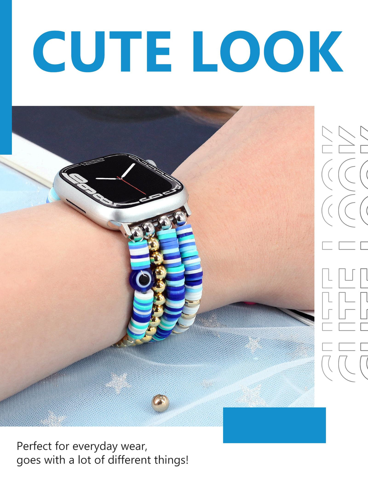 Jr.Dm Colorful Heishi Bracelets Is Made From Colorful Non-Fading Polymer Clay Beads, Which Are Flexible And Durable, Giving You A Comfortable Experience. Compatible With Apple Watch 10/9/8/7/Se/6/5/4/3/2/1. 2 Sizes (38Mm/40Mm/41Mm/42Mm(Series 10), 42Mm(Series 1/2/3)/44Mm/45Mm/46Mm) For Choice.