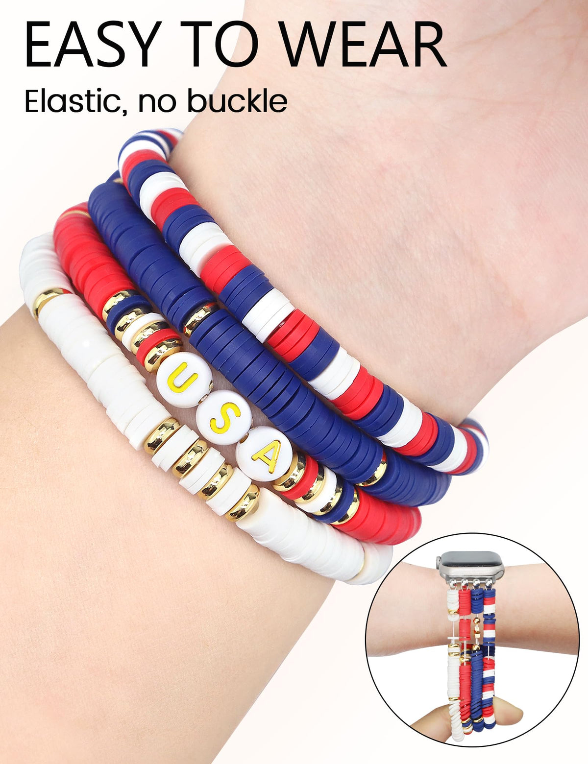 Jr.Dm Beaded Bracelet Compatible With Apple Watch 44Mm 42Mm 45Mm 46Mm For Women, Us America Flag Cute Preppy Handmade Elastic Wa
