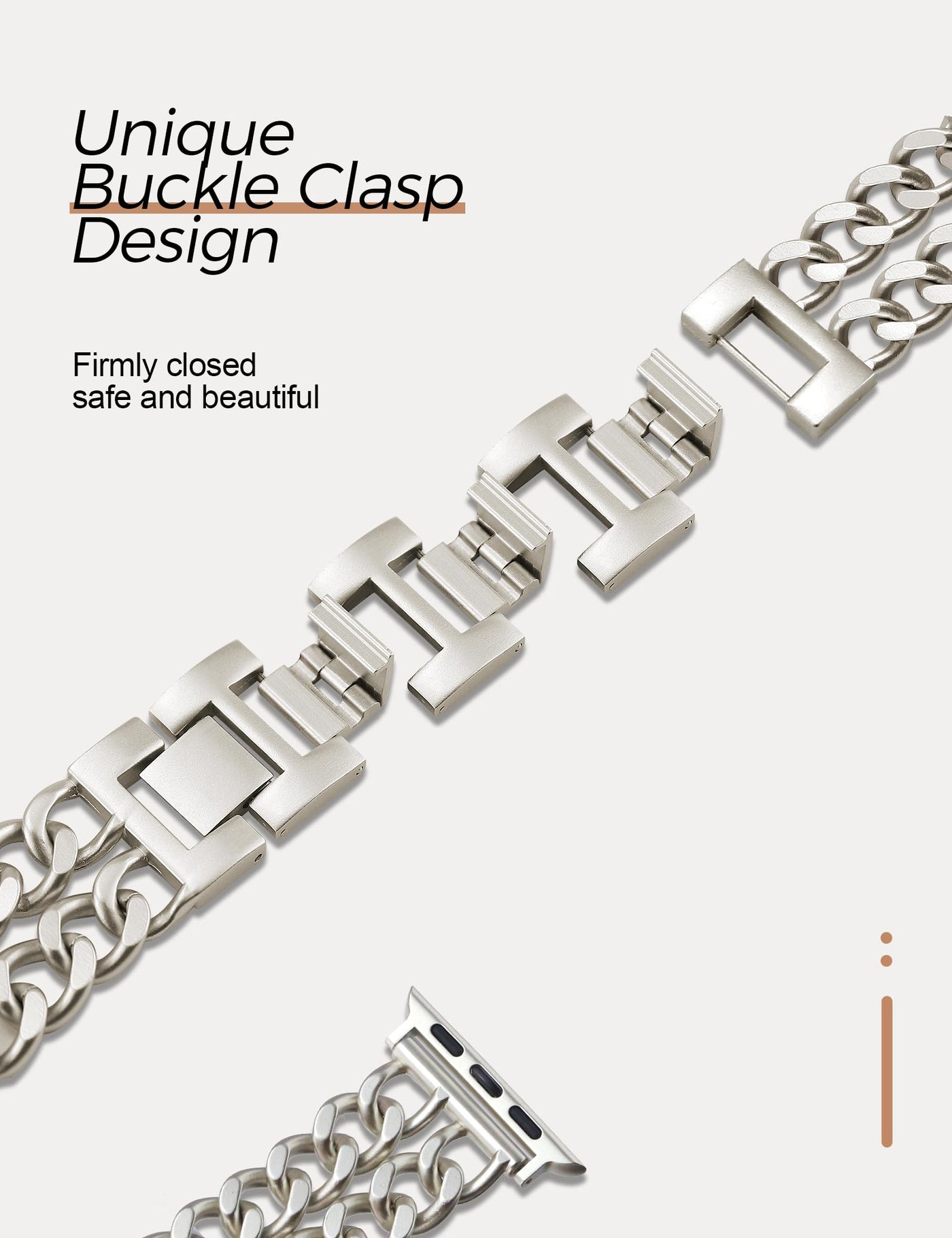 High Quality And Durable: This Iwatch Band Is Made Of Premium Metal Alloy And Well-Polished By Hand. Vacuum Electroplating The Whole Watch Band Makes It Durable And Keeps The Color Lasting Longer. | Elegant And Stylish: The Metal Watch Band Is Made With A Fashion Double Chain Design, Which Gives Your Outfit A Western Cowboy-Style, Elegant And Fashion Look. It Perfectly Fits Any Outfits, Casual, Dressy, Business Looks, Etc.. For Work, Dates, Party, Shopping, Show, Any Leisure, Or Special Occasions. | Safe And Beautiful: Made Of Unqiue Buckle Clasp Design, The Band Is Firmly Closed And Fit Your Wrist Well, More Beautiful And Safety. The Watch Band Is Also Easy To Wear And Take Off With The Buckle Clasps. | Adjustable Length And Easy Removing Links: We Add 3 More Detachable Clasps To Extend The Band Length. You Can Easily Adjust The Length By Hand Even Without Tools. It Is Very Convenient And Easy To Work With. It Fit Wrist Size: 5.4''-7'' (137 Mm-188 Mm) | Compatible With All Apple Watch Models: This Fashion Watch Band Pairs With All Apple Watch Series 10/9/8/7/6/5/4/3/2/1/Se/Ultra. The Watch Connector Comes In 2 Sizes - 38Mm/40Mm/41Mm/42Mm(Series 10) And 42Mm(Series 1/2/3)/44Mm/45Mm/46Mm/49Mm. Warm Tips-No Cover Included, Only Watch Band