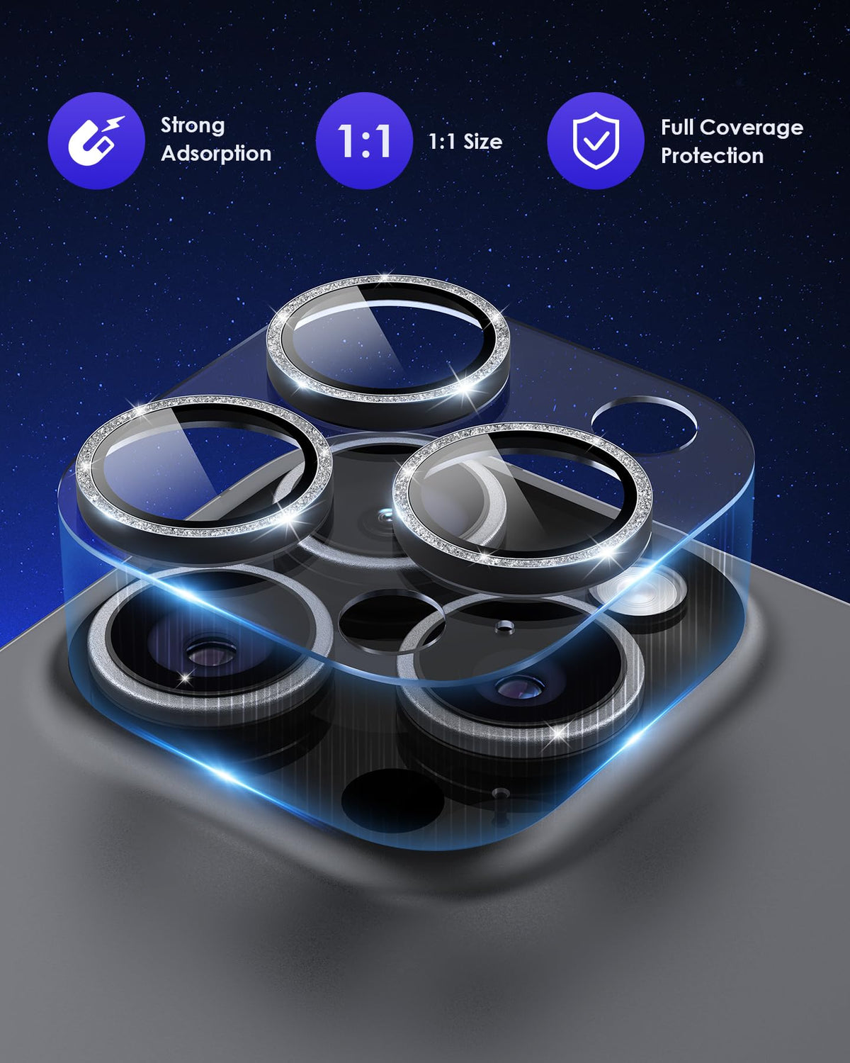 Kanosan For Iphone 16 Pro Max/Iphone 16 Pro/Iphone 14 Pro/Iphone 14 Pro Max Camera Lens Protector Glitter, Clear Acrylic Plus Al