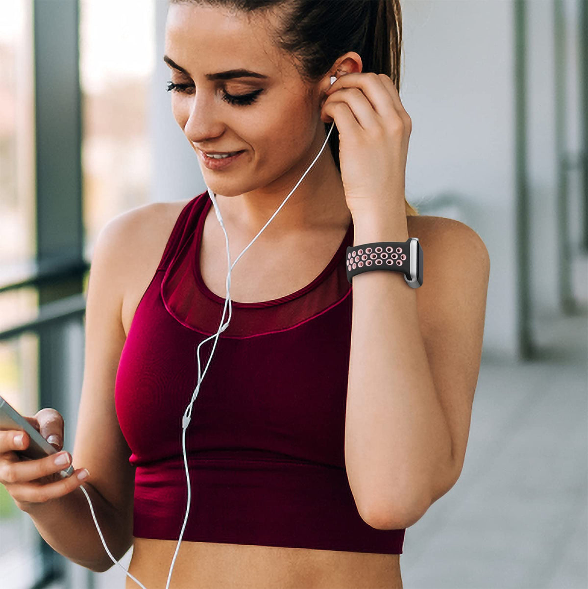 Lerobo Band Compatible With Apple Watch Bands 41Mm 40Mm 38Mm Se For Women Men,Durable Soft Silicone Sport Bands Replacement Wristbands Iwatch Series 8 7 6 5 4 3 2 1,Sport Edition, Black/Pink,M/L