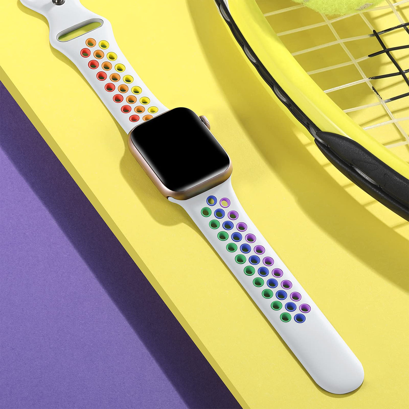 Lerobo Compatible With Apple Watch Bands 44Mm 45Mm 42Mm 49Mm,Sport Soft Silicone Replacement Bands For Apple Watch Se & Iwatch Series 8 7 6 5 4 3 2 1,Sport Edition For Women Men,White/Rainbow