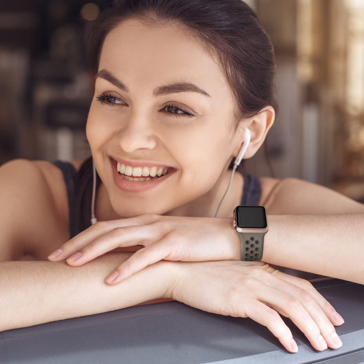 Lerobo Sport Bands Compatible For Apple Watch Band 45Mm 44Mm 42Mm 49Mm Women Men,Soft Silicone Replacement Bands For Apple Watch Ultra 2 Se Iwatch Series 9 8 7 6 5 4 3 2 1,Olivegrey/Coffeegrey