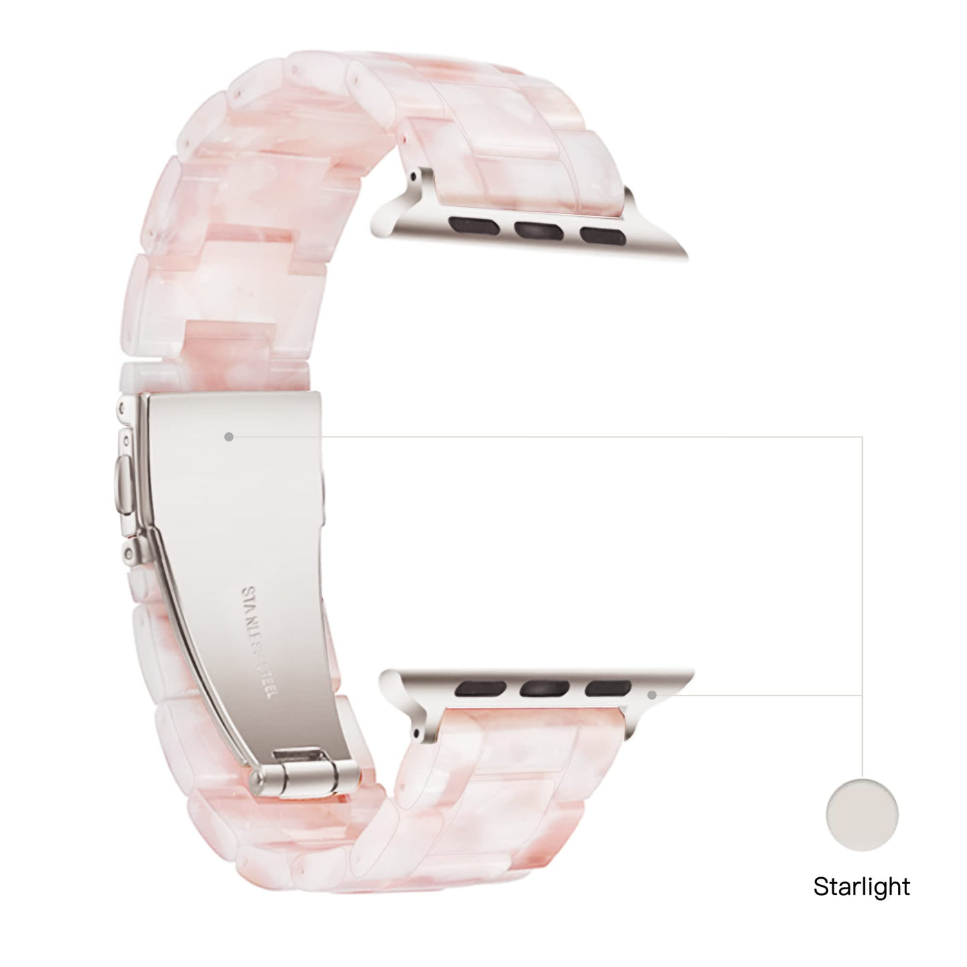 ?Application?Exclusive To Starlight Color Dial, Also Can Be Personalized With Any Color Dial. Compatible With All 38Mm/40Mm/41Mm Iwatch Apple Watch, Including Apple Watch Series 9, Series 8, Series 7, Series Se, Series 6, Series 5, Series 4, Series 3, Series 2, Series 1, Apple Watch Ultra 2, Apple Watch Ultra 1, Sport. Fit For All Wrists Between 5.0''-7.8'', Almost For The Vast Majority Of People. | ?The Coolest Design?The Design Of This Band Is Really Cool, Dazzling And Stylish, It Will Attract The Attention Of Others. Comfortable To Wear, Pleasing To The Eye, It Is Absolutely Addictive. | ?Water Resistant?In General-Suitable For Wash Hands; Swimming And Snorkeling, But Not Scuba Diving. Luxury, Nobility, Elegance And Durability Style Enough For Work And Stylish Enough For A Traveling. | ?Comfortable To Wear?Extreme Lightness Makes It Very Comfortable To Wear, And Besides Skin-Friendly. Each Piece Of Resin Is Slowly Polished By The Experienced Artificers. Combined With Premium Tortoise-Tone Resin, It Offers A New Bracelet Look To Your Apple Watch. Lighter Than Stainless Steel Metal Band. | ?Excellent After-Sales Service?You Can Return It If You Are Not Satisfied With The Quality. Please Feel Easy To Order It. Package Including: 1X Watch Band. 1 X Links Removal Tool(Smart Watch Is Not Included).