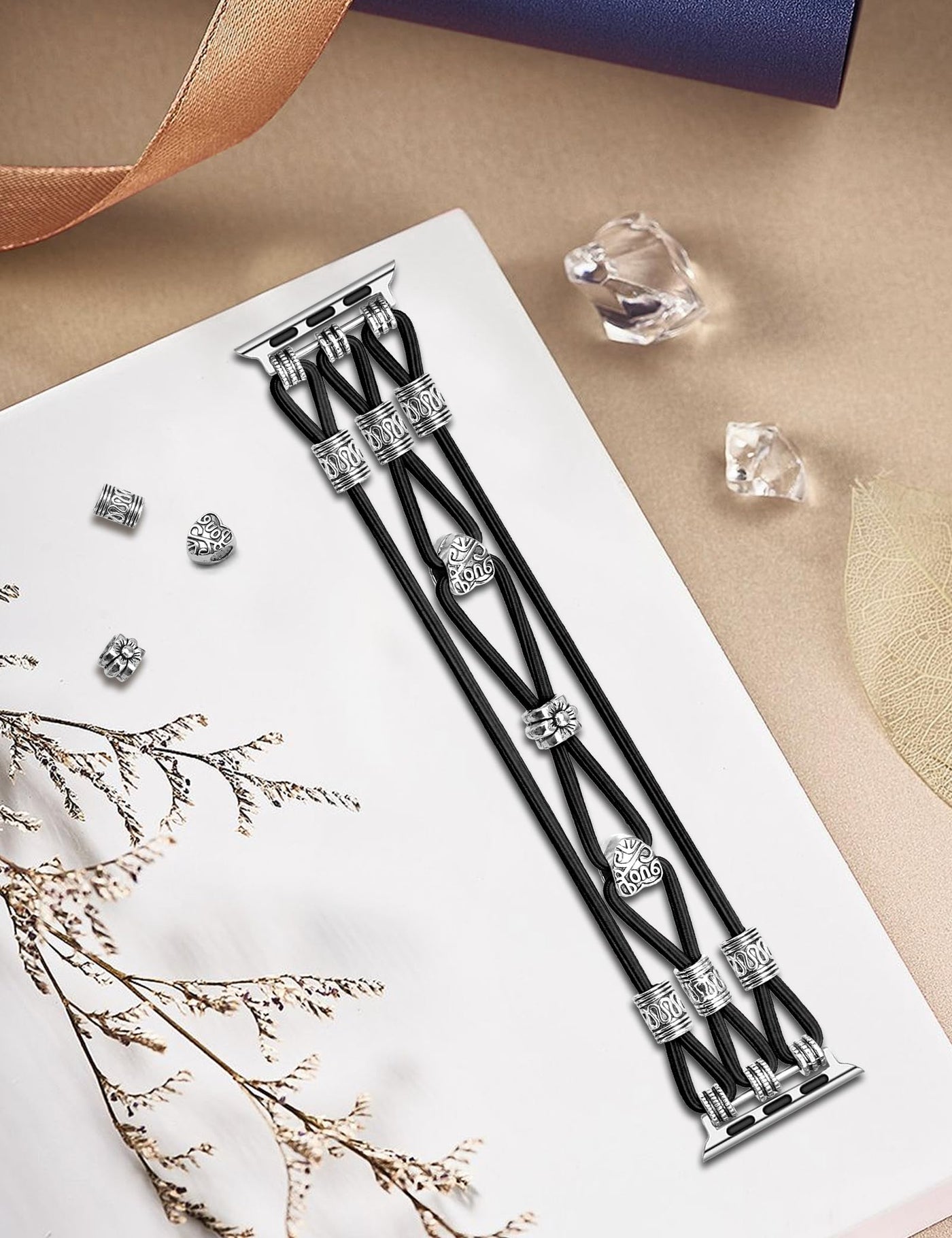 Q: Which Apple Watch models are compatible with this bracelet?A: The Newlibery Beaded Bracelet is compatible with Apple Watch models 38mm, 40mm, 41mm, 42mm, 44mm, 45mm, and 46mm, including iWatch SE and Series 1 through 10.