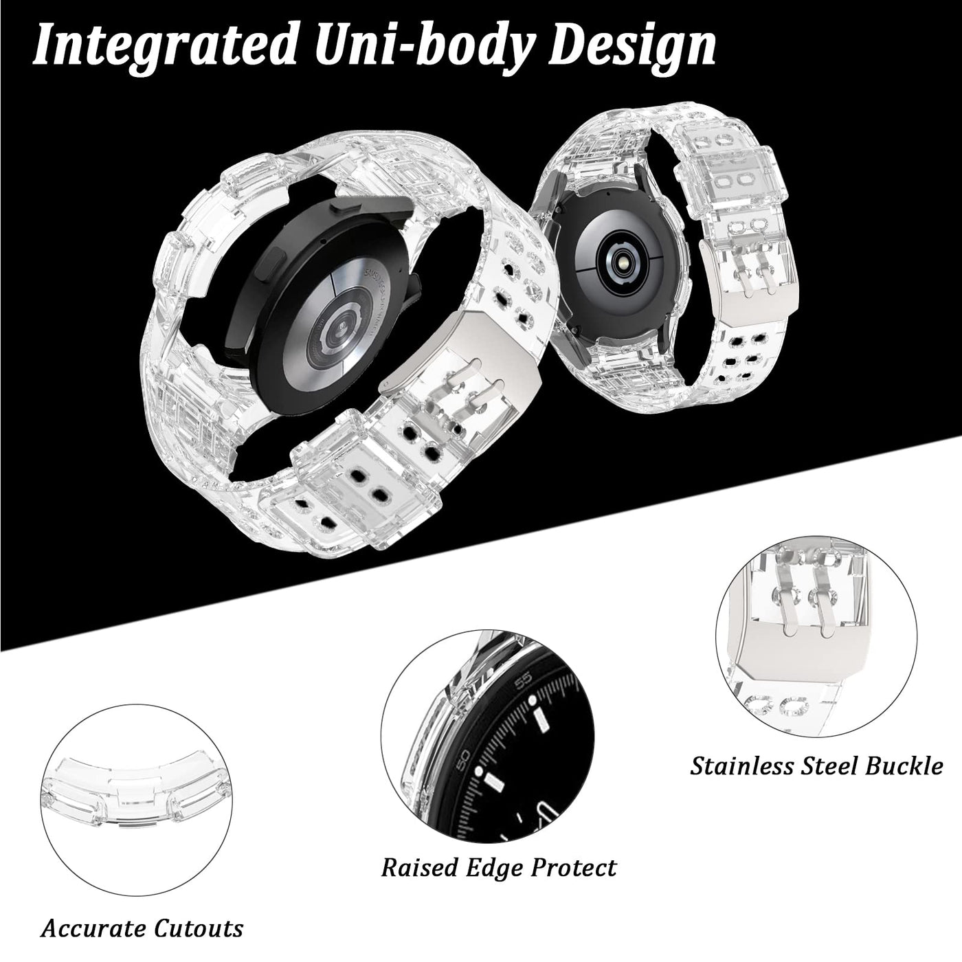 Ninki Compatible Galaxy Watch 6 Band With Case Clear Galaxy Watch 5 4 Band 40Mm, Full Protective Sport Samsung Watch 6 40Mm Band Bumper Replacement Strap Case For Galaxy Watch 4 Band Case Transparent