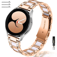 Ninki Compatible Samsung Galaxy Watch 6 Band Classic 43Mm 47Mm 40Mm 44Mm,20Mm Resin Metal Samsung Galaxy Watch 5 Band Pro 45Mm 40Mm 44Mm,Galaxy Watch 4 Band Classic 40Mm 44Mm 42Mm 46Mm Rose Gold+White