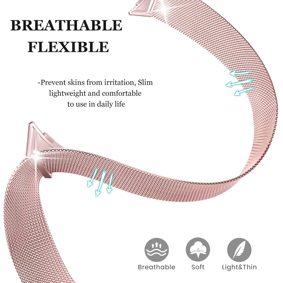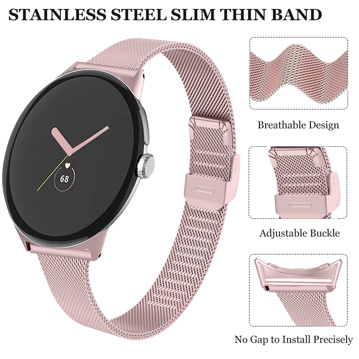 Ninki Stainless Steel Watch Band Compatible For Slim Google Pixel Watch 2 Bands / Pixel Watch Band Women Men,[No Gap] Metal Business Wristband Bracelet Bands For Google Pixel Watch Band Strap / Pink