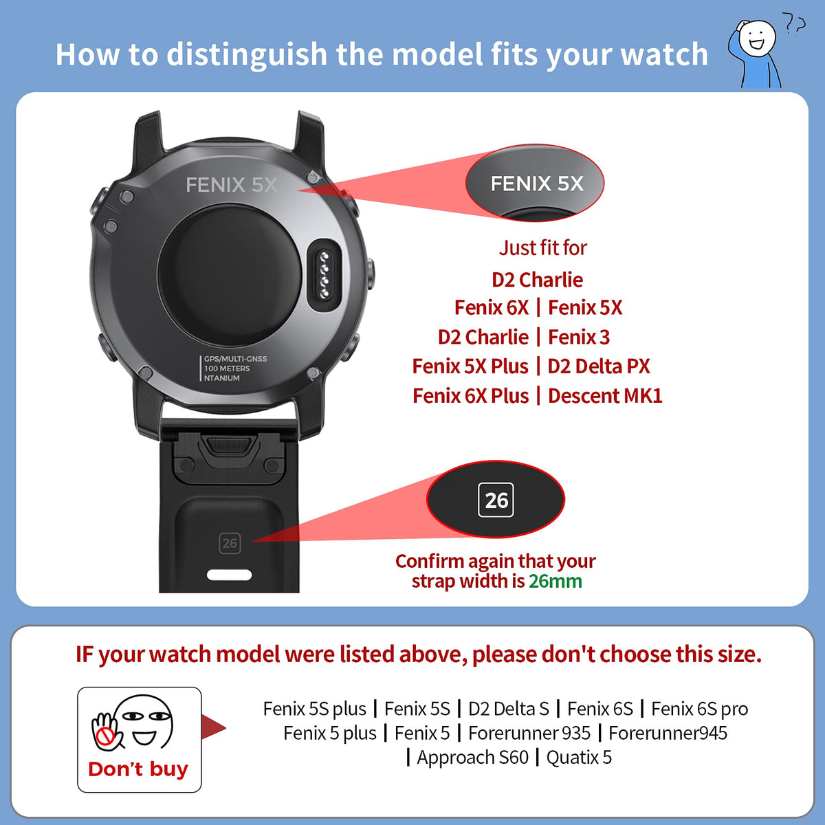 The Soft Silicone Watch Band Fit For Fenix 5X,Fenix 5X Plus,Fenix 6X,Fenix 6X Pro,Fenix 3,Fenix 3 Hr,Tactix,Descent Mk1,D2 Delta Px,D2 Charlie Smartwatch.