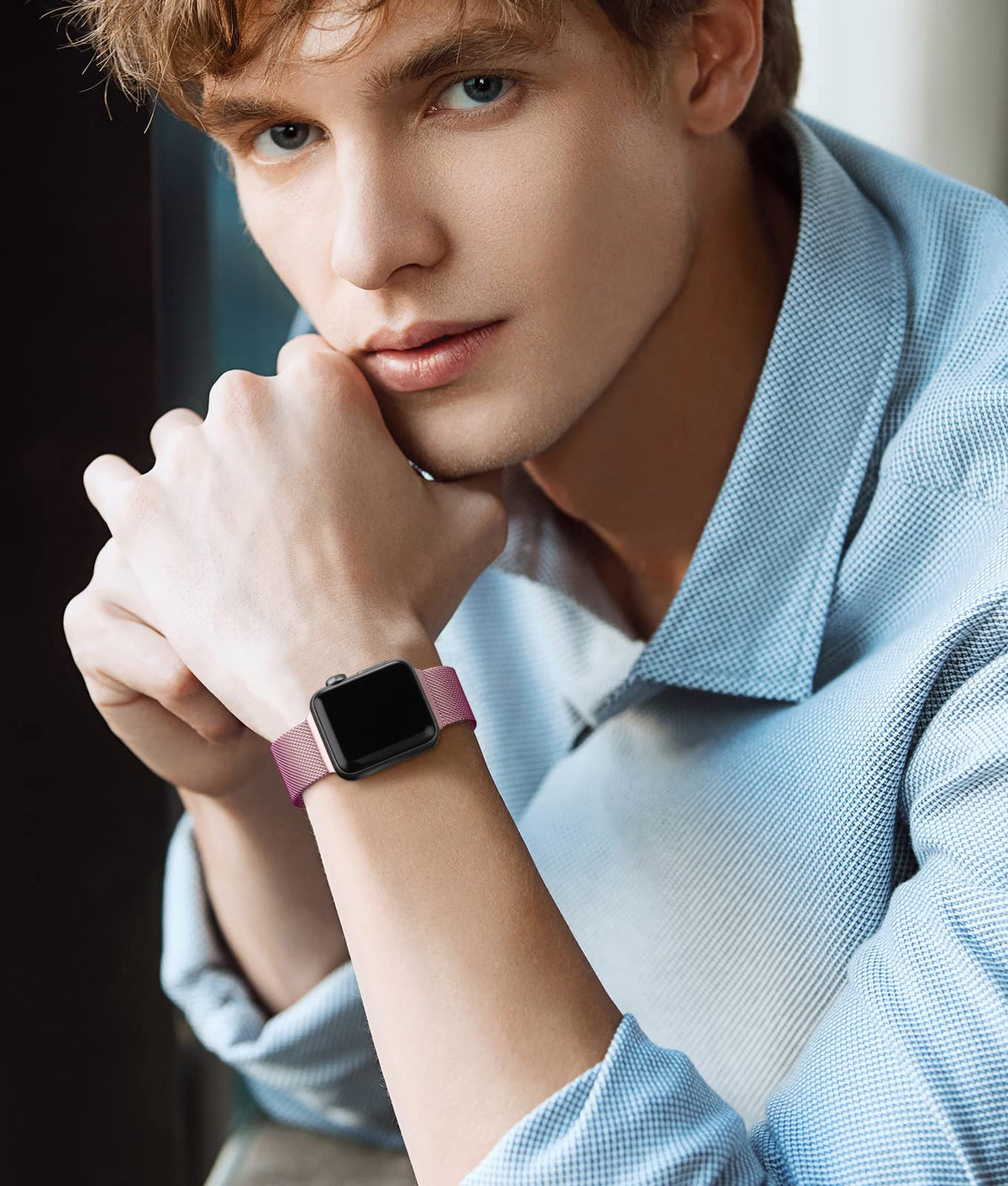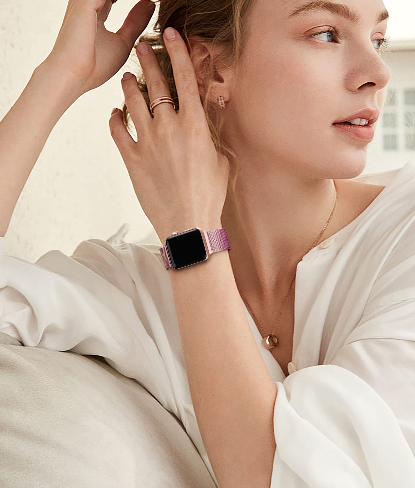 Rabini Stainless Steel Band Compatible With Apple Watch 38Mm 40Mm 41Mm 42Mm 44Mm 45Mm 46Mm 49Mm, Specially Designed For Women And Men.46Mm 42Mm(Series 10) Bands Compatible With Apple Watch Series 10 (2024);45Mm 41Mm Bands Compatible With Apple Watch Series 9 (2023), Series 8 (2022) And Series 7 (2021);49Mm Bands Fit For Apple Watch Ultra;44Mm 40Mm Bands Compatible With Iphone Watch Se 1St And 2Nd Generation, Series 6 (2020), Series 5 (2019) & Series 4 (2018);42Mm 38Mm Bands Compatible With Apple Watch Series 3 (2017) & Series 2 (2016) & Series 1 (2015).Please Choose The Correct Watch Model And Size For Yourself.Size Reference38Mm/40Mm/41Mm/42Mm(Series 10) Size Fits Wrist 5.5 -7.9 (140Mm-200Mm) In Circumference;49Mm/46Mm/45Mm/44Mm/42Mm(Series 3/2/1) Size Fits Wrist 5.9 -8.9 (150Mm-225Mm) In Circumference.Waterproof & Rustproofmade From Premium Stainless Steel Metal Material, The Sleek Iwatch Mesh Loop Band Is Sturdy,Rustproof, Fade-Proof And Easy To Maintain. It Is The Best Companion For Daily And Outdoor Sports Such As Running And Swimming,A Great Affordable Option For Your Apple Watch Accessories.About Stainless Steel Metal Iwatch Band Designthe Apple Watch Sport Loop Is Designed With Magnetic Adjustable Clasp That Makes The Smartwatch Band Easier To Put On And Take Off. And The Magnets Hold The Band Snugly On Your Wrist, Preventing Your Apple Watch From Falling Off, Safer & Stronger.Our Apple Watch Metal Band Feature An Advanced Mesh Weave Construction, So The Water In Your Wrist Dries Easily, Making You Feel More Comfortable.Wear It Your Waydecorate With Rabini Replacement Bands To Identify Your Apple Watch And Show Your Personality And Luxurious.A Ideal Gift For Your Love, Your Mate, Family, Friends During Thanksgiving, Christmas, Birthday, New Year.