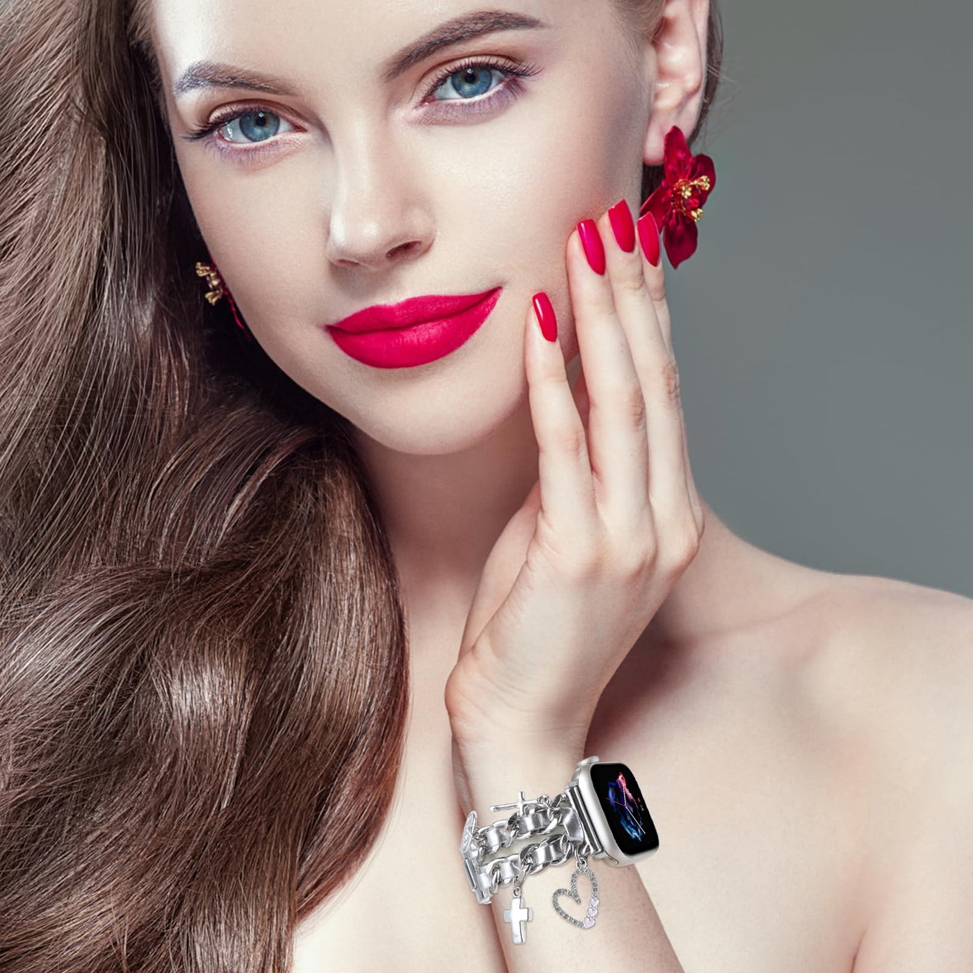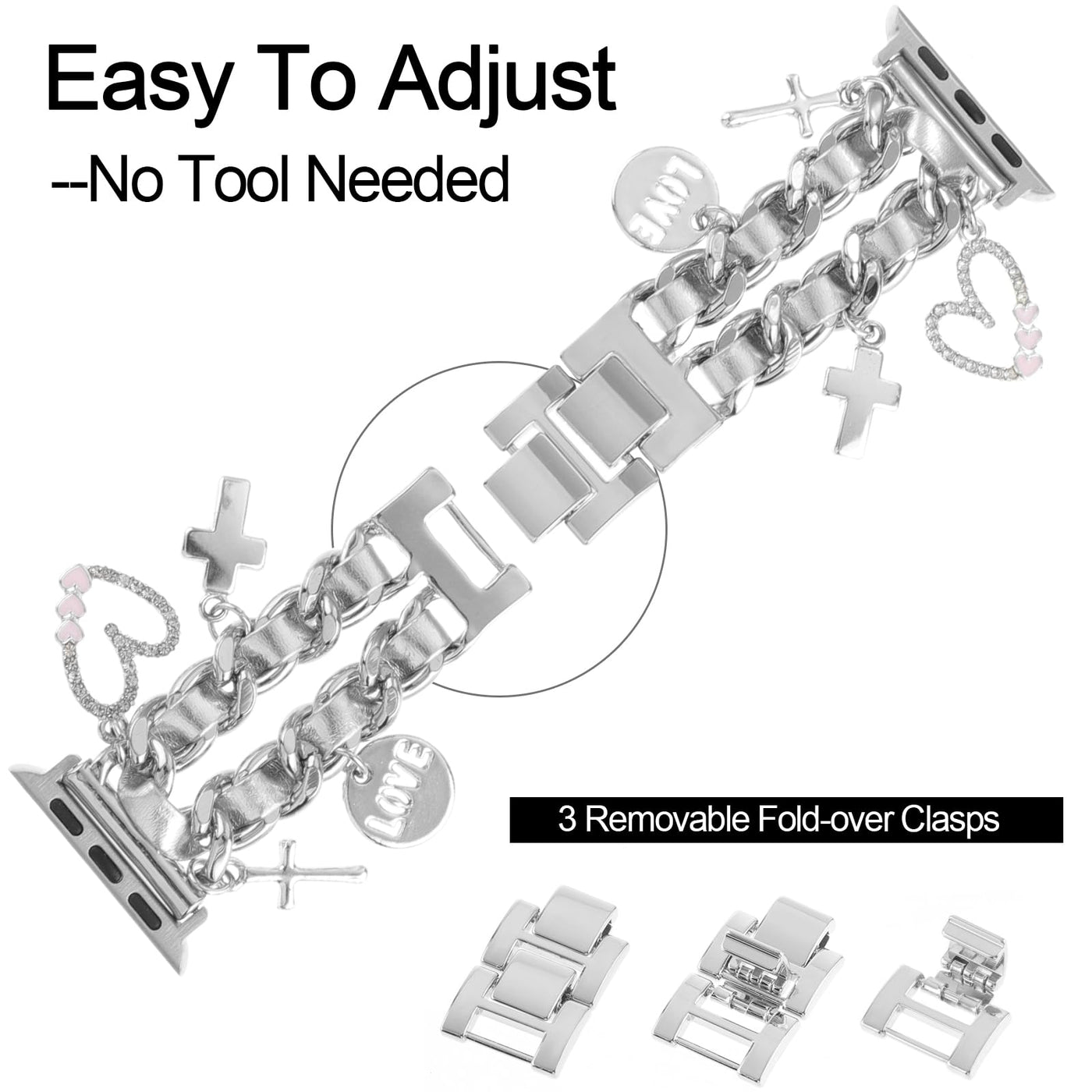 Specifications: Replacement For Apple Watch Band Material: Metal,Leather Product Style:Stylish Color:Silver Watch Band Quantities Of Pendants On The Silver Chain: 2 Exquisite Big Crosses 2 Exquisite Small Crosses 2 Engraved With 'Love' Pendants 2 Hollow Design Heart Shape With Rhinestones Watch Band Net Weight:About 57.23G (2.02Oz) Watch Band Size:About 165Mm(Length)X20Mm(Width) (6.5 *0.79 ) Package Size:About 228Mm(Length)X70Mm(Width) (8.98 *2.76 ) Compatible Models: Please Choose Size ''38/40/41Mm'' For The Following Series: Compatible With Apple Watch Series 1/2/3 38Mm(2015/2016/2017) Compatible With Apple Watch Series 4/5/6 40Mm(2018/2019/2020) Compatible With Apple Watch Series 7/8/9 41Mm(2021/2022/2023) Compatible With Apple Watch Se 40Mm (2020/2022) Please Choose Size ''42/44/45Mm'' For The Following Series: Compatible With Apple Watch Series 1/2/3 42Mm(2015/2016/2017) Compatible With Apple Watch Series 4/5/6 44Mm(2018/2019/2020) Compatible With Apple Watch Series 7/8/9 45Mm(2021/2022/2023) Compatible With Apple Watch Se 44Mm (2020/2022) Compatible With Apple Watch Ultra Ultra2 49Mm (2022/2023) (Please Check The Size On The Back Of Your Watch To Choose The Right Size.) What'S In The Box? 1 X Metal Watch Band(Watch Not Included) About Realsign: 1.We Sell Various Types Of Watch Bands,Watch Band Charms Accessories.We Sell Watch Straps Made Of Various Materials,Items With Original And Stylish Styles. 2.All Our Products Use Premium Materials,Have Good Quality And Are Well Packaged,We Provide Good Pre-Sales And After-Sales Services. 3.If You Have Any Questions About Our Products,Please Contact Us By Email And We Will Provide You With A Solution As Soon As Possible.