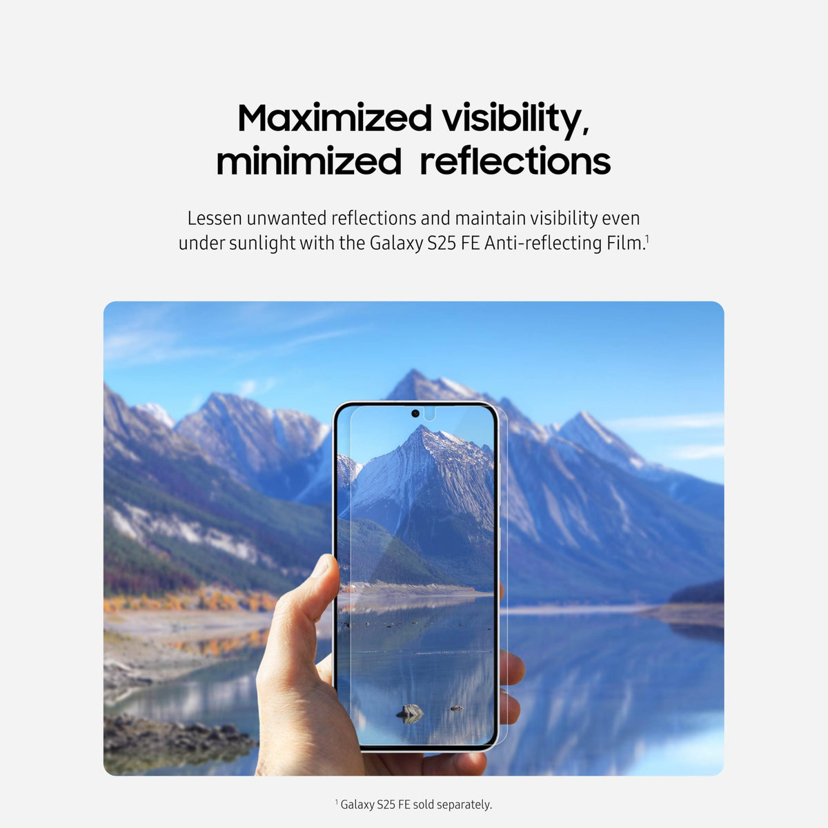 Keep Your Phone Safe And Your Screen Pristine. Cover Your Galaxy S25 Fe With The S25 Fe Anti-Reflecting Film And Enhance Your Experience While Protecting Your Device.1Galaxy S25 Fe Sold Separately.