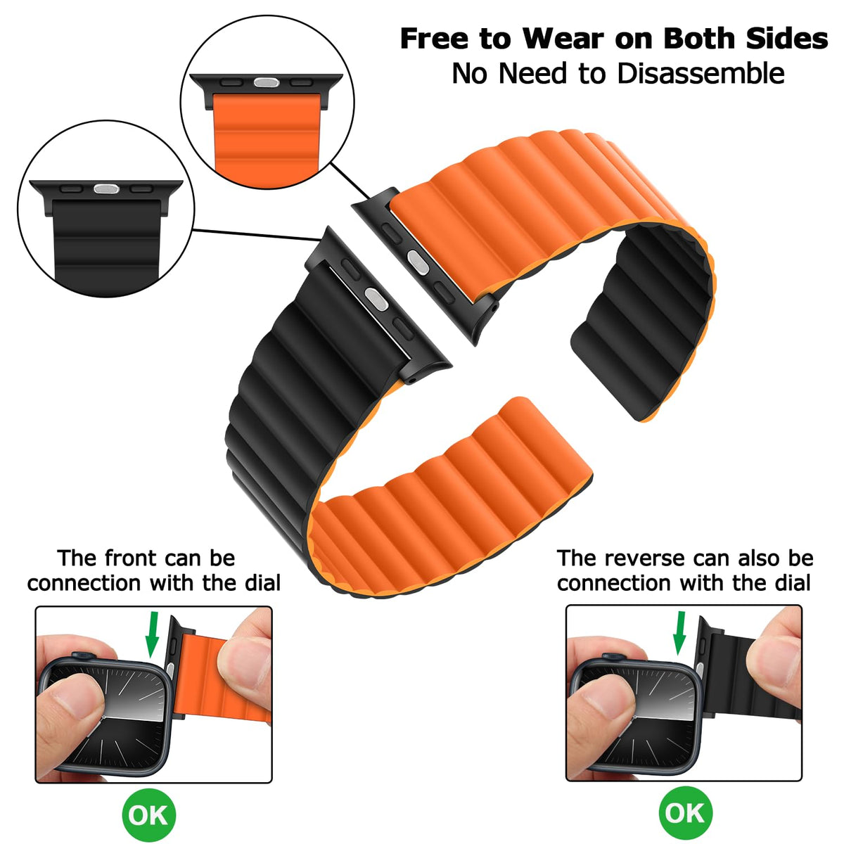 Tasikar Magnetic Straps Compatible With Apple Watch Strap 49Mm 45Mm 44Mm 42Mm Ultra 2 Ultra Series 9 8 7 6 5 4 3 2 1 Se 2 Se, Silicone Band With Magnetic Closure For Men Women (Orange-Black)