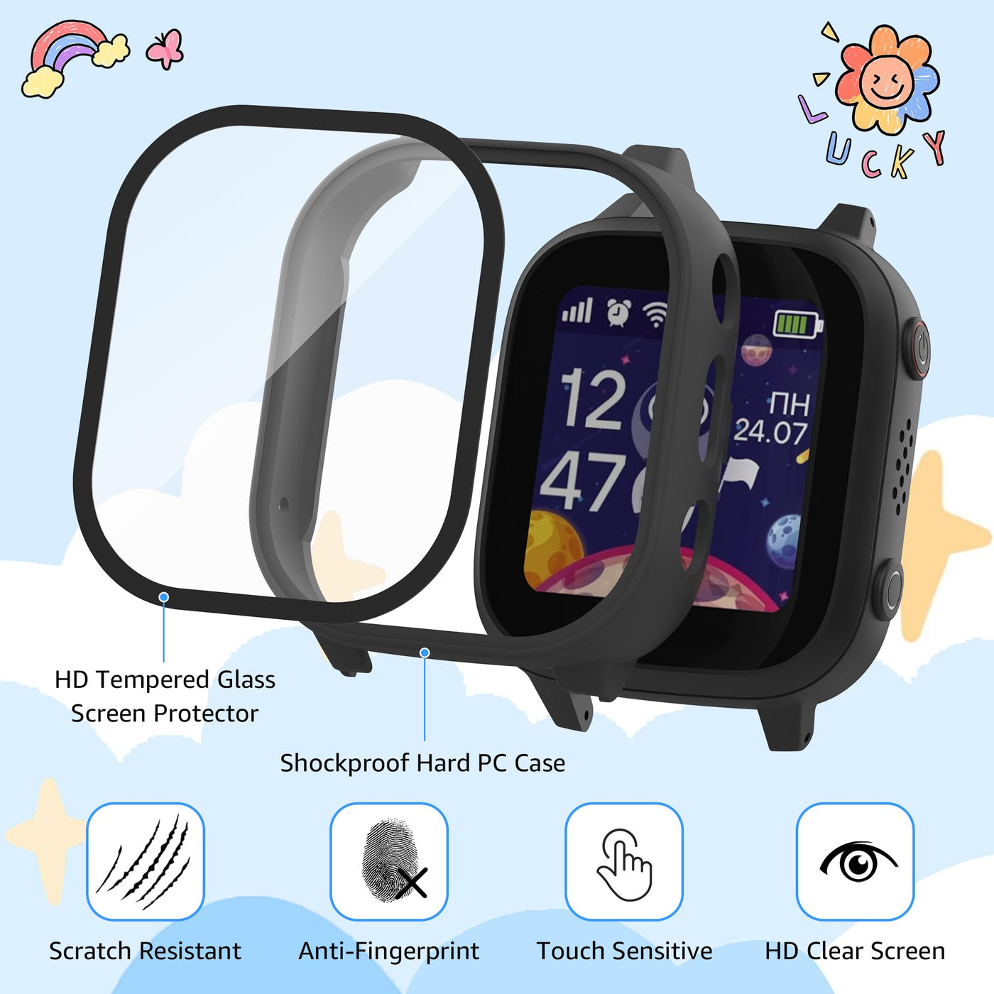Tiorecime 2 Pack Case For Cosmo Jrtrack 3 And 4 Smart Watch With Tempered Glass Screen Protector, Shockproof Hard Pc Bumper, Scratch Resistant Protective Cover