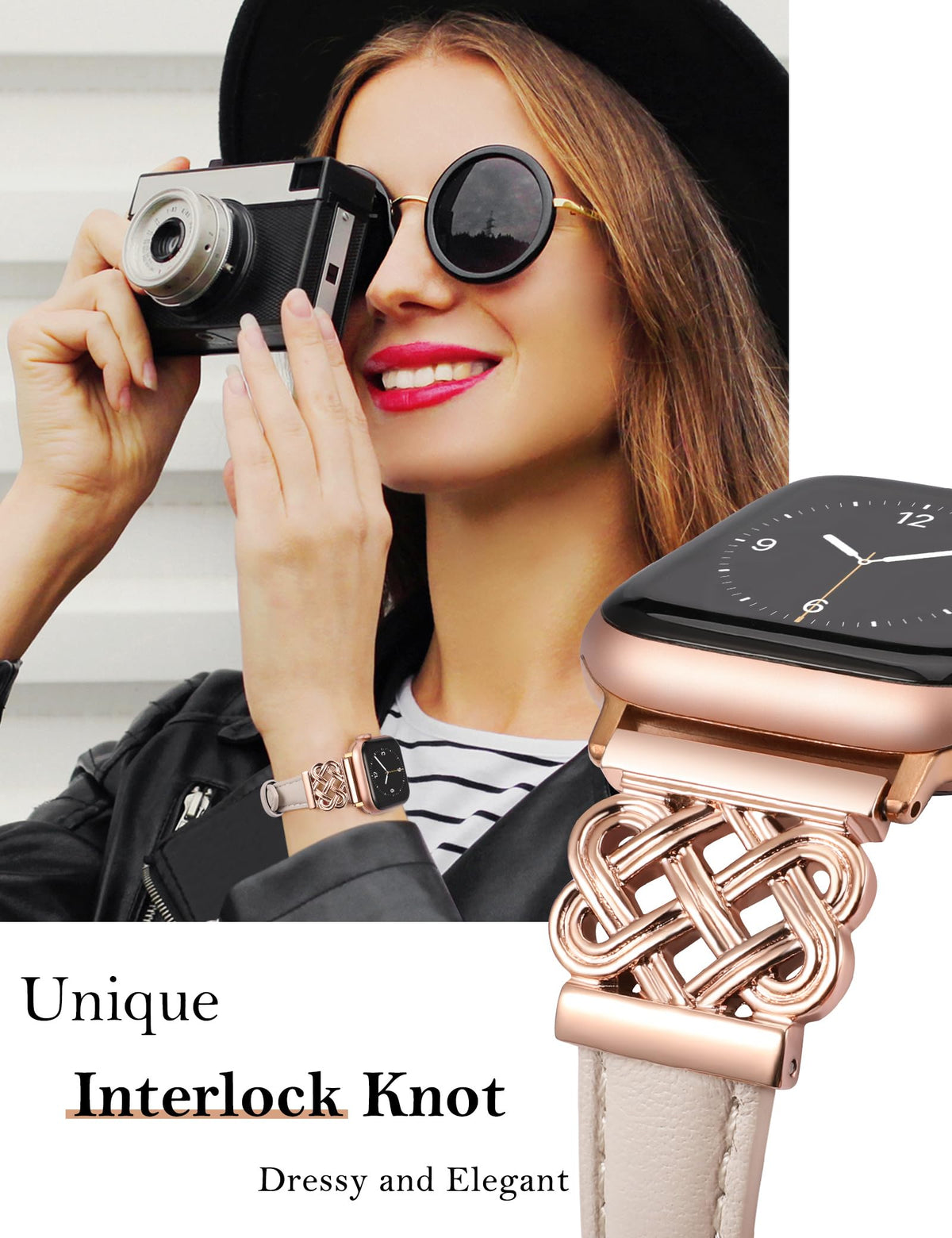 Specifics:Materials: Genuine Leather+High-Grade Metalweight: 22Gwrist Size: 5.3''-7.3''Features: Compatibility: Compatible With Apple Watch Band 38Mm 40Mm 41Mm 42Mm 44Mm 45Mm 46Mm 49Mm Iwatch Band Series 10/9/8/7/6/5/4/3/2/1/Se/Ultra 2/Ultra (No Watch Included). Superior Quality: The Replacement For Apple Watch Leather Band Is Made Of Soft Leather Which Is Durable And Comfortable To Wear, Matching Your Iwatch Band With A Perfect Accessories. Interlock Buckle: Our Compatible With Apple Watch Ultra Band Embodies Elegance And Femininity. The Celtic Love Knot Symbolizes Eternal Love And Friendship, Making It An Ideal Gift For A Close Friend. Feminine Design: Our Thin Leather For Apple Watch Straps Women Are Designed To Elevate Your Replacement For Apple Watch Bands 44Mm From A Functional Device To A Piece Of Fancy Looking Wristband Accessory. Multiple Color Options: The Narrow Replacement For Apple Watch Bands For Women 40Mm Have Multiple Colors For Option, Each One Is Feminine. Versatile For Any Occasion: Our Compatible With Apple Watch Series 9 45Mm Band Is Perfect For A Great Gift Choice For Mother'S Day, Birthday, Valentine'S Day, Christmas, Thanksgiving Day, Etc. Durable And Long-Lasting: Built To Withstand Daily Wear And Tear, This Replacement For Apple Watch Band 40Mm Is Engineered With Precision To Stand The Test Of Time. Comfortable Fit: We Understand The Importance Of Comfort In A Watchband, Which Is Why Our Compatible With Apple Watch Se Band Is Designed To Be Lightweight And Breathable. Thoughtful Gift: Whether You'Re Heading To The Office, Attending A Formal Event, Or Simply Going For A Casual Outing, Our Fit For Apple Watch Bracelet Bands For Women Add A Touch Of Sophistication To You.
