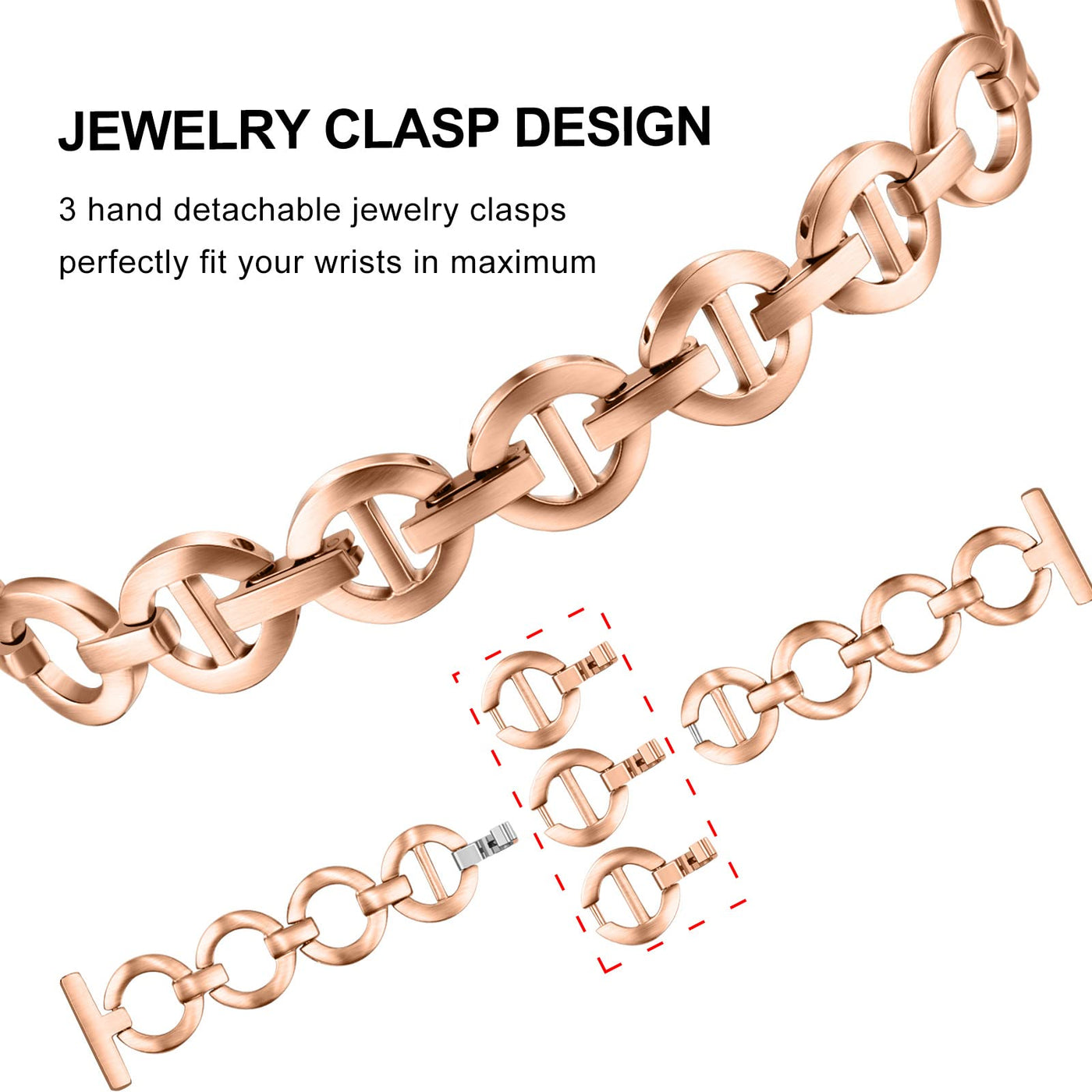 Trumirr Band For Garmin Vivoactive 4S / Venu 2S / Venu 3S / Vivomove 3S / Forerunner 265S Women Smart Watch, 18Mm Rose Gold Stainless Steel Watchband Feminine Jewelry Strap For Fossil Women 'S Gen 6 42Mm / Gen 5E 42Mm Package Includes: 1 X Watch Band 3 X Quick Release Pin