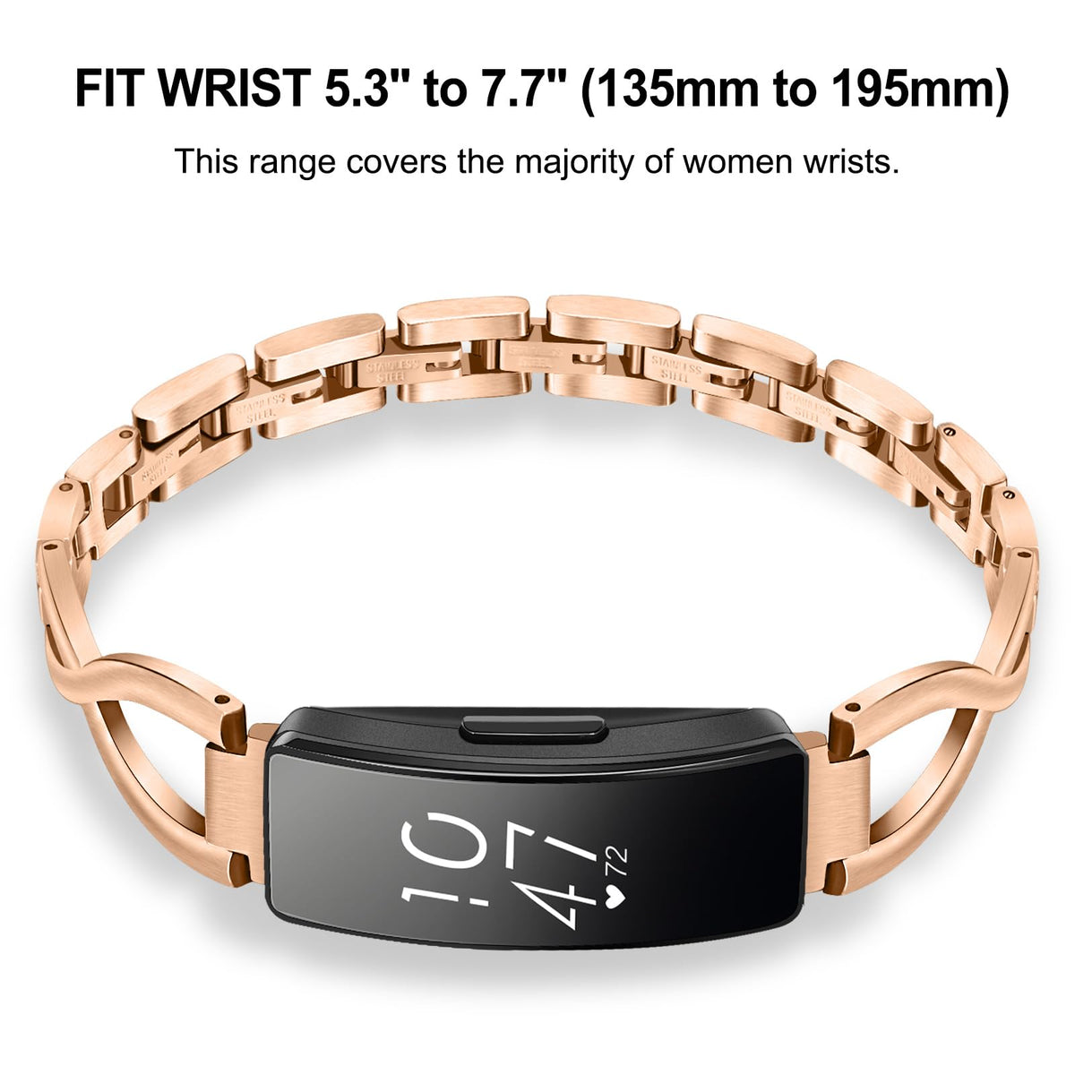 Trumirr Band For Inspire / Inspire Hr / Inspire 2 / Inspire 3 Women, Solid Stainless Steel Watchband Jewelry Strap Wrist Bracelet For Fitbit Inspire 3 / Inspire 2 / Inspire Smart Watch Package Includes: 1 X Watch Band 3 X Quick Release Spring Bar 1 X Instruction