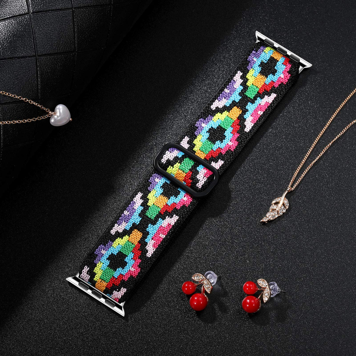 Vcegari Band Compatible With Apple Watch 45Mm 41Mm 44Mm 42Mm 40Mm 38Mm 46Mm 49Mm Iwatch Series Se Series 10 Series 9 Series 8 Series 7 Series 6 Series 5 Series 4 Series 3 Series 2 Series 1Material:Stretchy Loop Woven Polyester And Sliver Stainless Steel Connector.Stylish Design:Unique Elastic Style, Classic & Mysterious Element With Printings, Very Soft And Comfortable. Making Your Watch More Fashionable. Multiple Colors For Your Choice:Dress Up Your Watch, Match It With Different Outfits And You Will Get Lots Of Compliments.