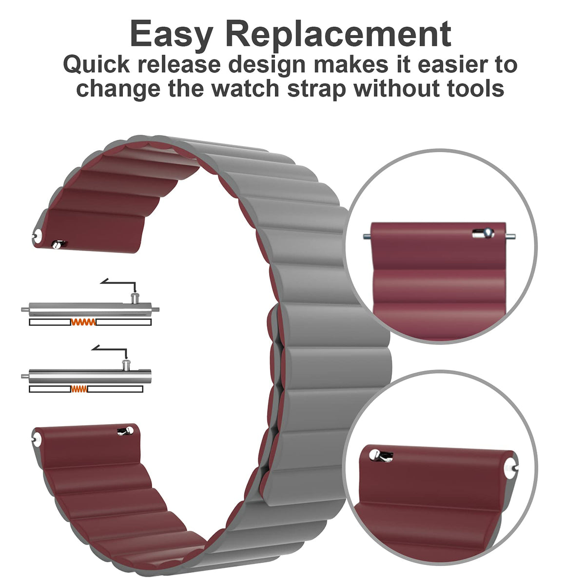 Watch Band, Magnetic Smartwatch Bands, Silicone Strap Quick Release 20Mm 22Mm Smart Watch Straps For Galaxy Watch 42Mm Active 2