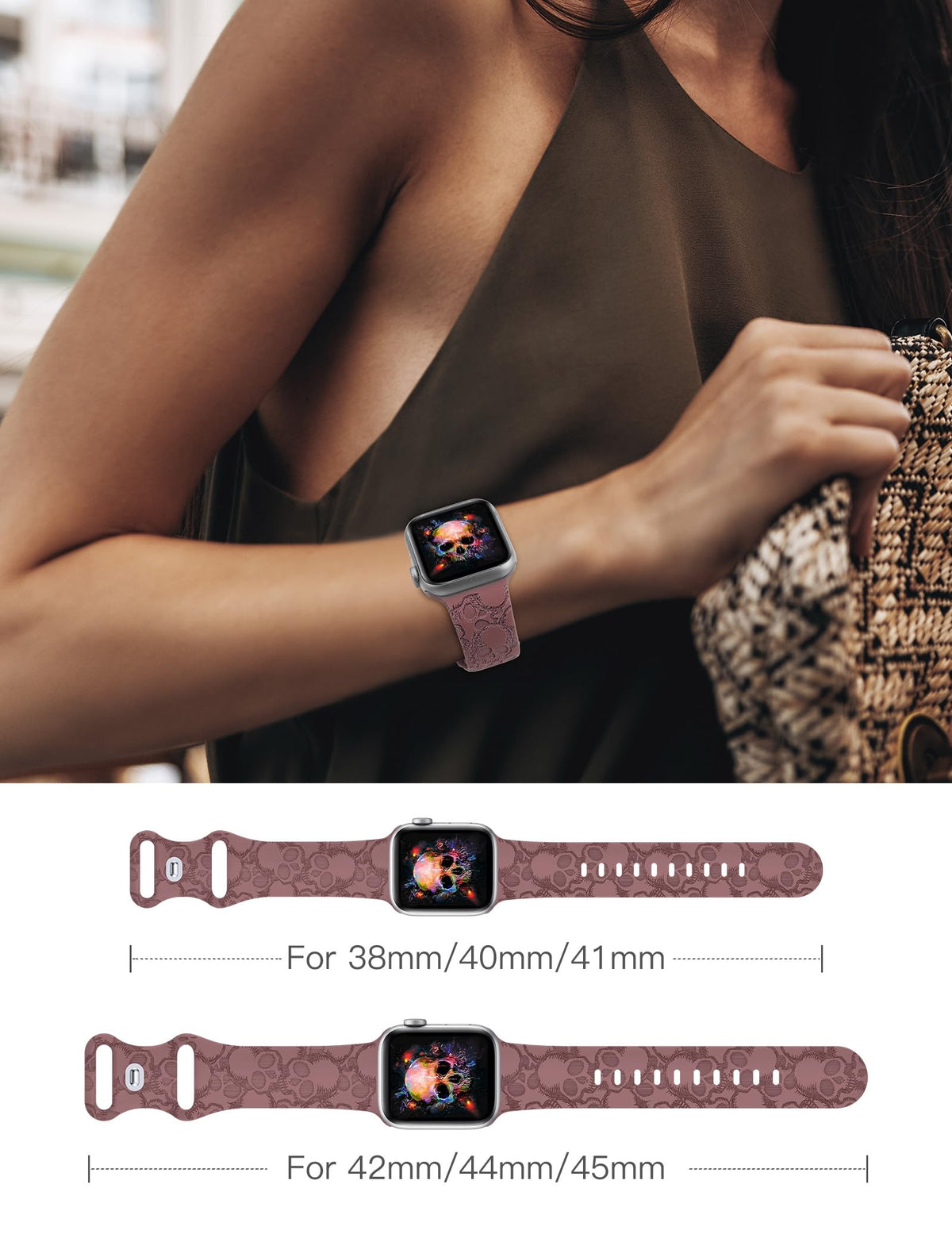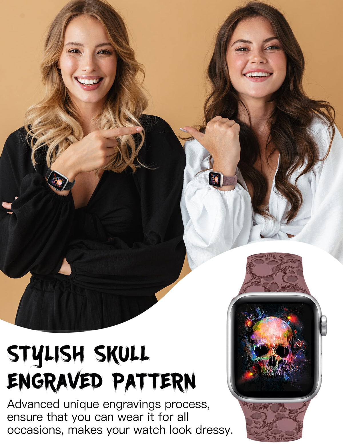 Wearlizer Halloween Skull Engraved Band Compatible With Apple Watch Band 40Mm/38Mm/41Mm For Women Men Cute Soft Silicone Sport S