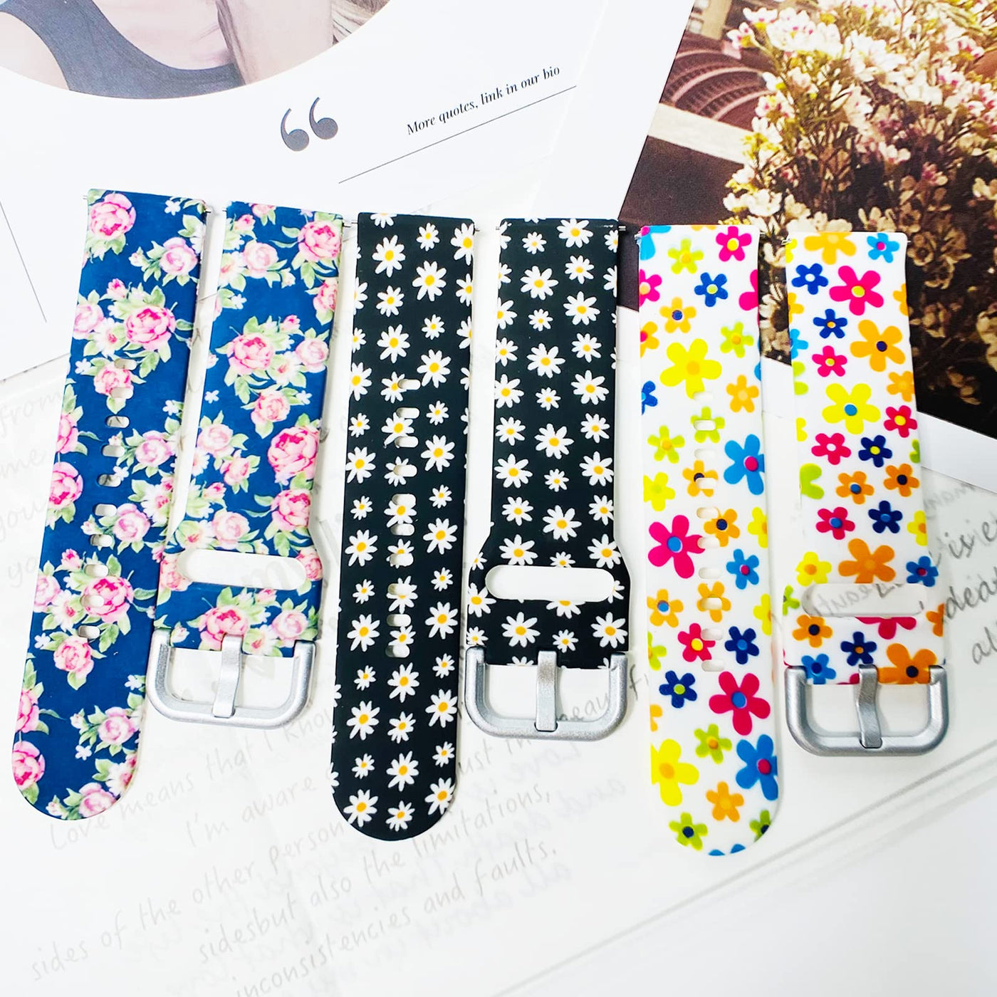 Xingmaly Bands Compatible With Amazfit Bip 5 Smart Watch Bands Women Girl, Soft Silicone Pattern Floral Strap Bands For Amazfit