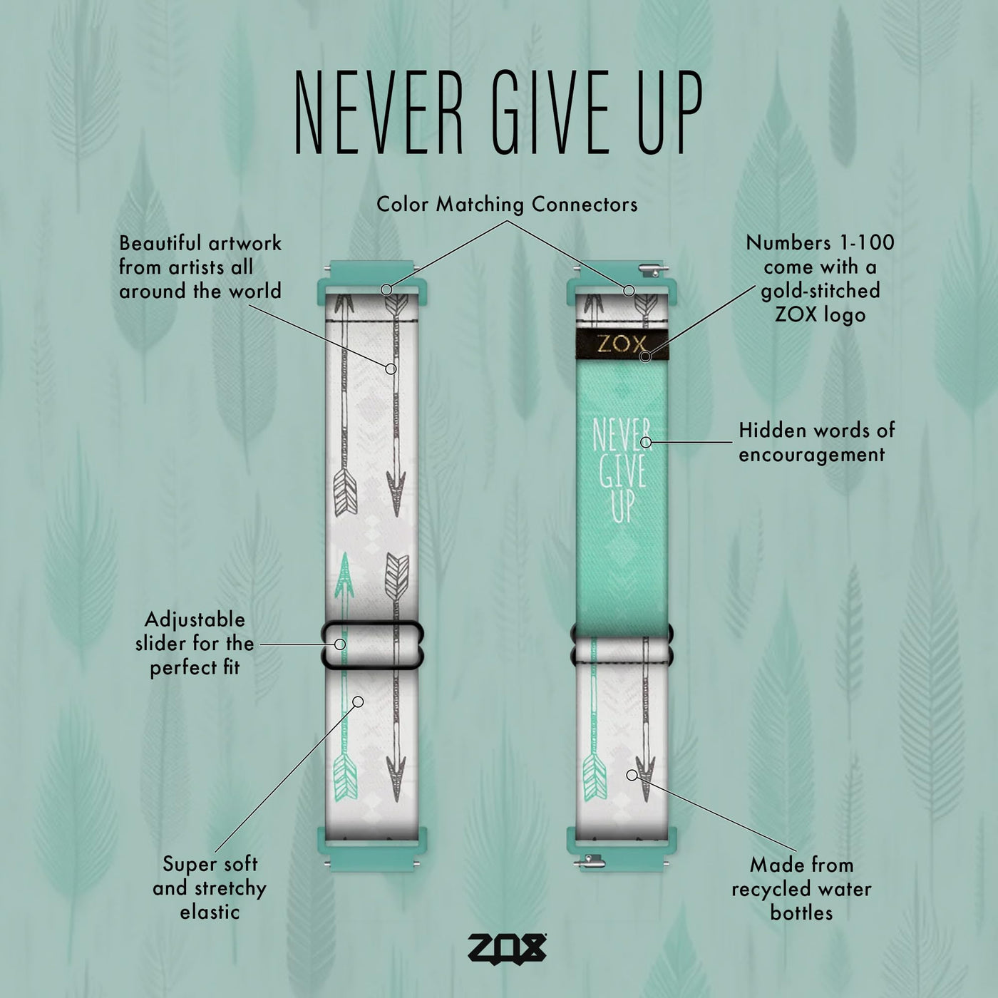 Zox Android Smart Watch Band - Never Give Up | Soft, Adjustable Elastic Band With Motivational Affirmations And Beautiful Artwor