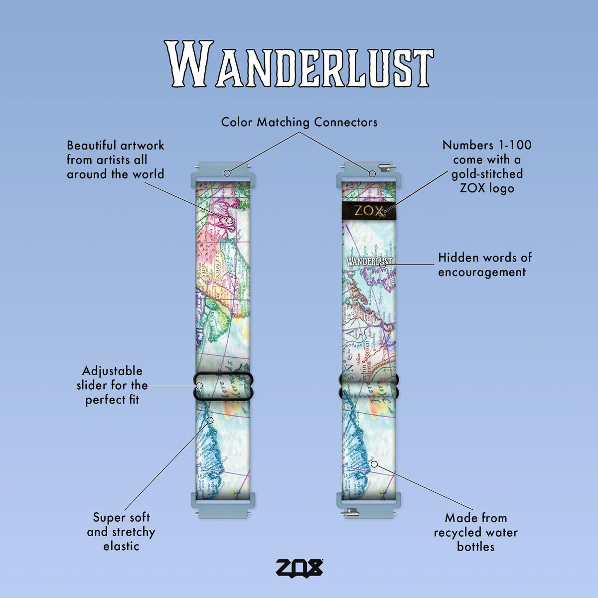 Zox Android Smart Watch Band - Wanderlust | Soft, Adjustable Elastic Band With Motivational Affirmations And Beautiful Artwork -