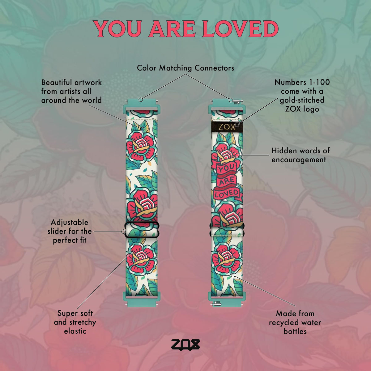 Zox Android Smart Watch Band - You Are Loved | Soft, Adjustable Elastic Band With Motivational Affirmations And Beautiful Artwor