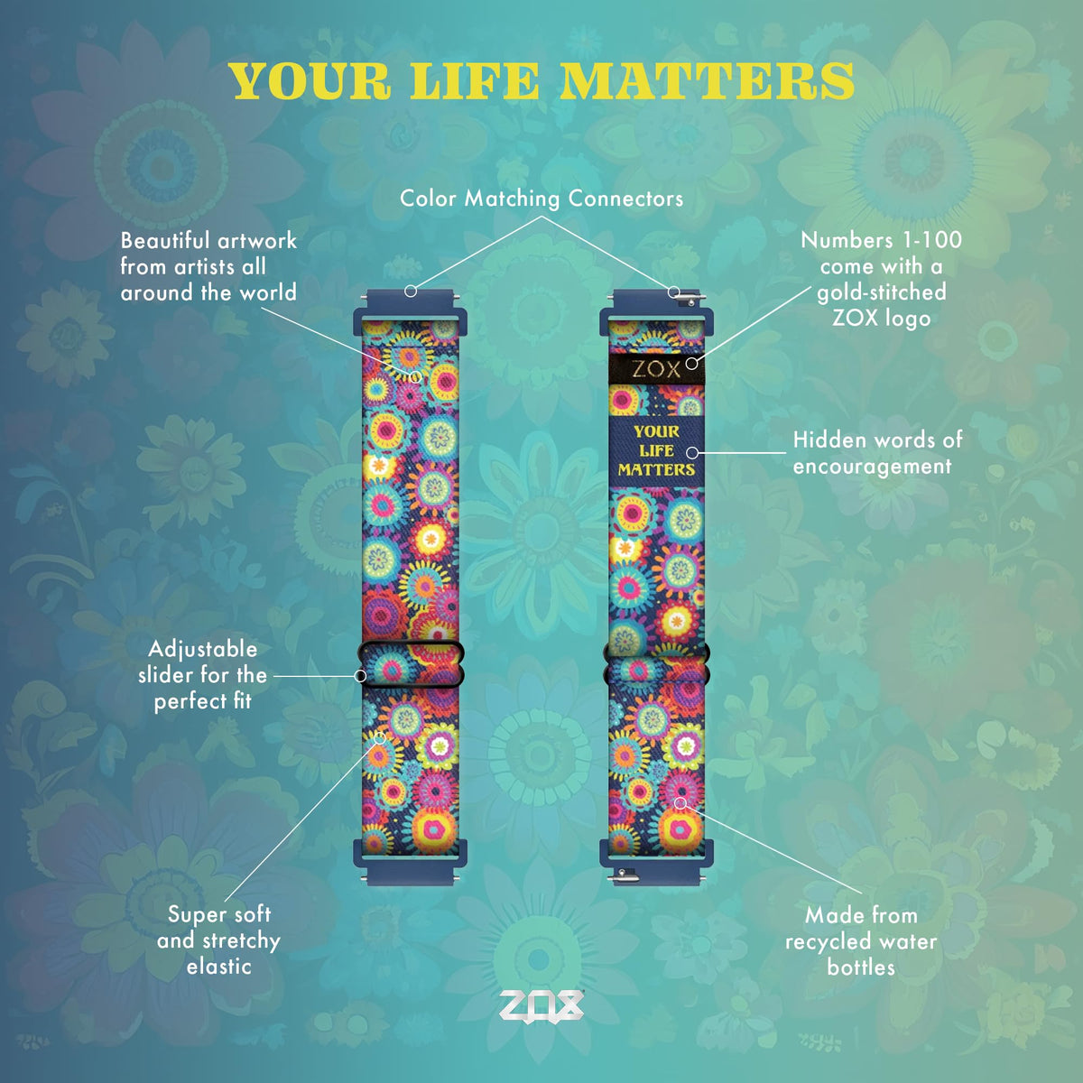 Zox Android Smart Watch Band - Your Life Matters | Soft, Adjustable Elastic Band With Motivational Affirmations And Beautiful Ar
