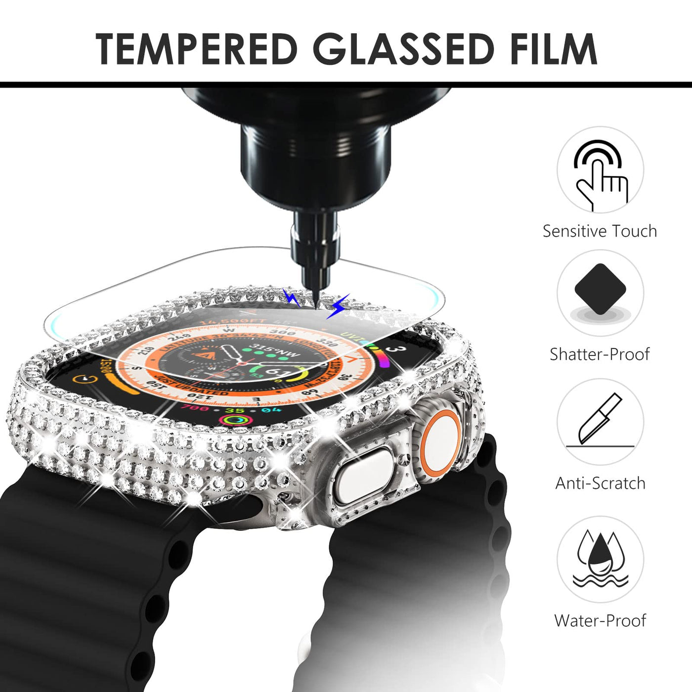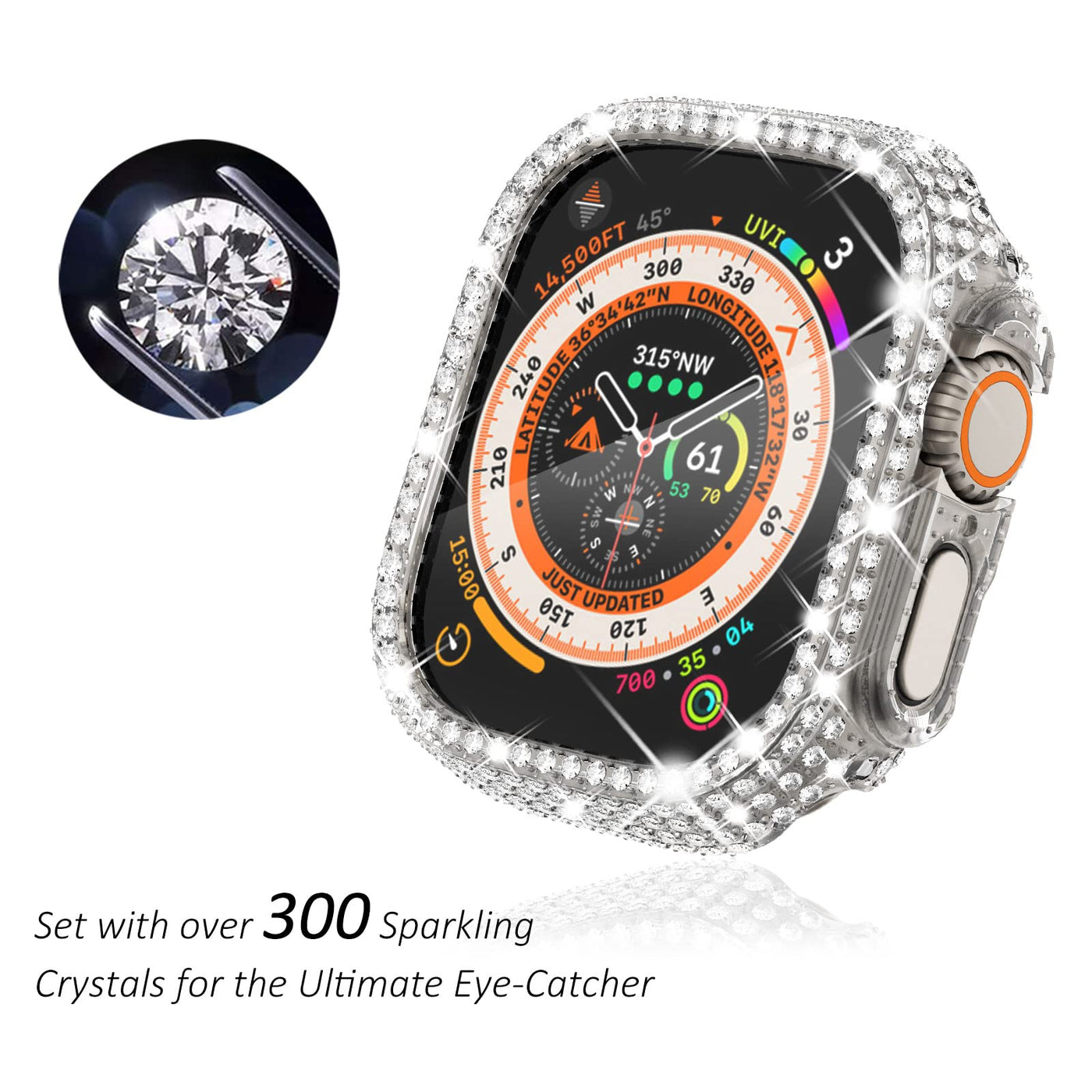 Apple Watch Ultra Case- The Apple Watch Case Is Designed For Apple Watch Ultra 49Mm. The Package Contains 1 X Bling Pc Case With 2 X Tempered Glass Screen Protector. | Over 400 Crystals- Apple Watch Ultra Jewelry Case Featuring Five Rows Of Scintillating Cubic Zirconia Stones, Perfect For Upgrading A Casual Outfit Or Complementing A Luxurious Evening Look. | Tempered Glass Screen Protector- Its Tempered Glass Shield Is Made From The Same Protective Film Material Used To Military Aircrafts; Full Cover Protective Case Provides Daily Protection Against Scratches And Reduce Chances Of Damage To Your Screen From Impact Forces And Drops. | Sensitive Touch- Only 0.1Mm Thickness Cover Maintains Apple Watch Ultra'S Original Response Sensitivity, Ensuring Quick App Launching; Apple Watch Ultra Case Snap Onto Your Device Simply, Buttons Are Easy To Touch; No Need To Take Off The Case When Charging The Watch. | 18 Month Conditionally Refund Or Resend With Any Quality Problems, Makes A Perfect Gift For Someone Who Loves To Glam Up Their Everyday Accessories Or For Yourself.