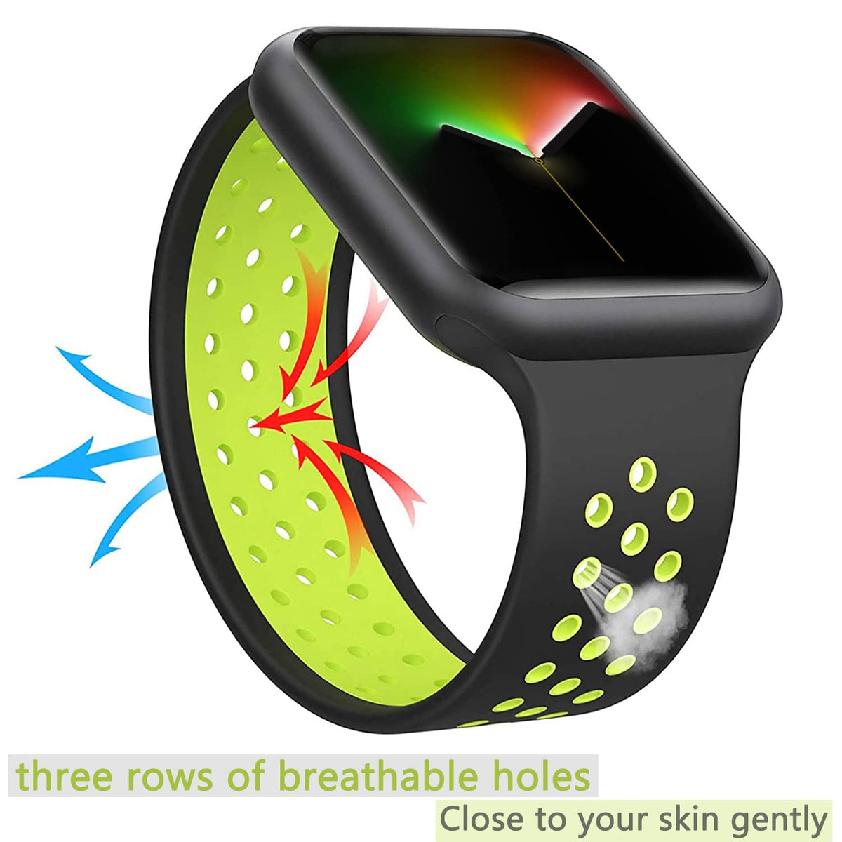 Q: What makes the ALMNVO silicone watch band unique compared to others?A: The ALMNVO silicone watch band features a hollowed-out design that enhances breathability, making it comfortable for all-day wear. Its soft silicone material is easy to clean, lightweight, and designed for a secure fit on your Apple Watch.